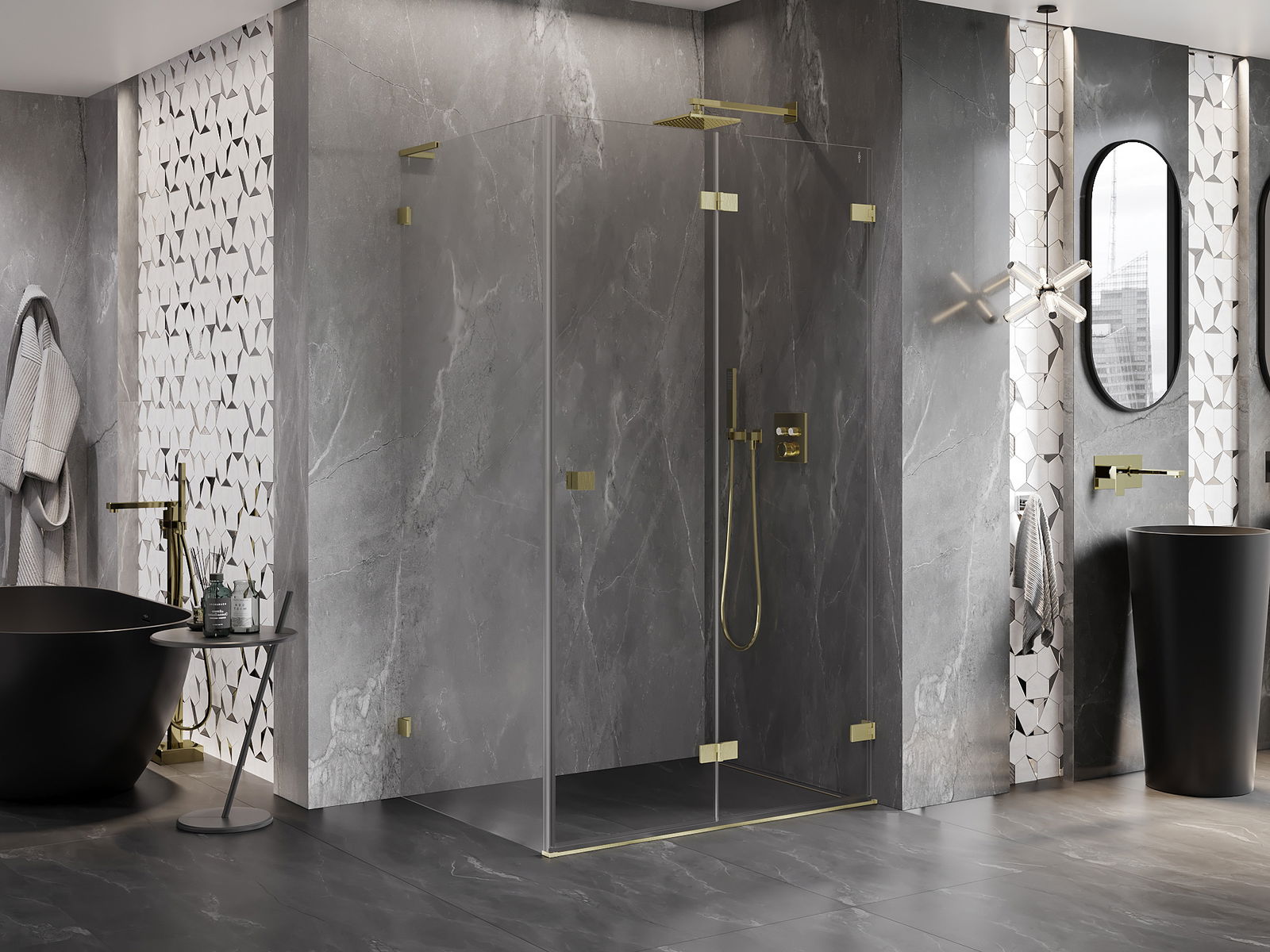 Mexen Lunar-F L сгъваема кабина за душ, дясна 95 x 70 см, прозрачна, златна четка - 836L-095-070-55-00-P