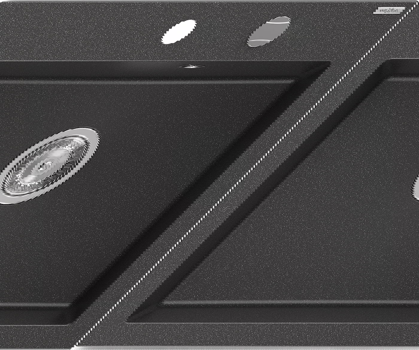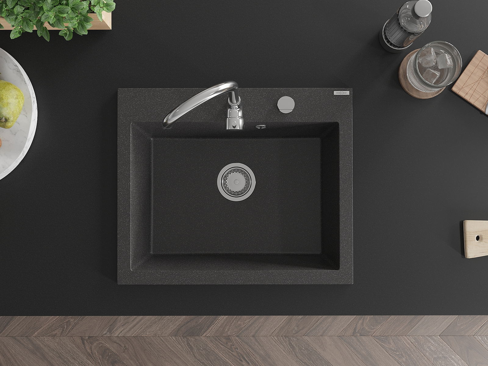 Mexen Elix кухненска мивка от гранит с 1 корито 600 x 500 мм, черна на петна, с хромиран сифон - 6525601005-76