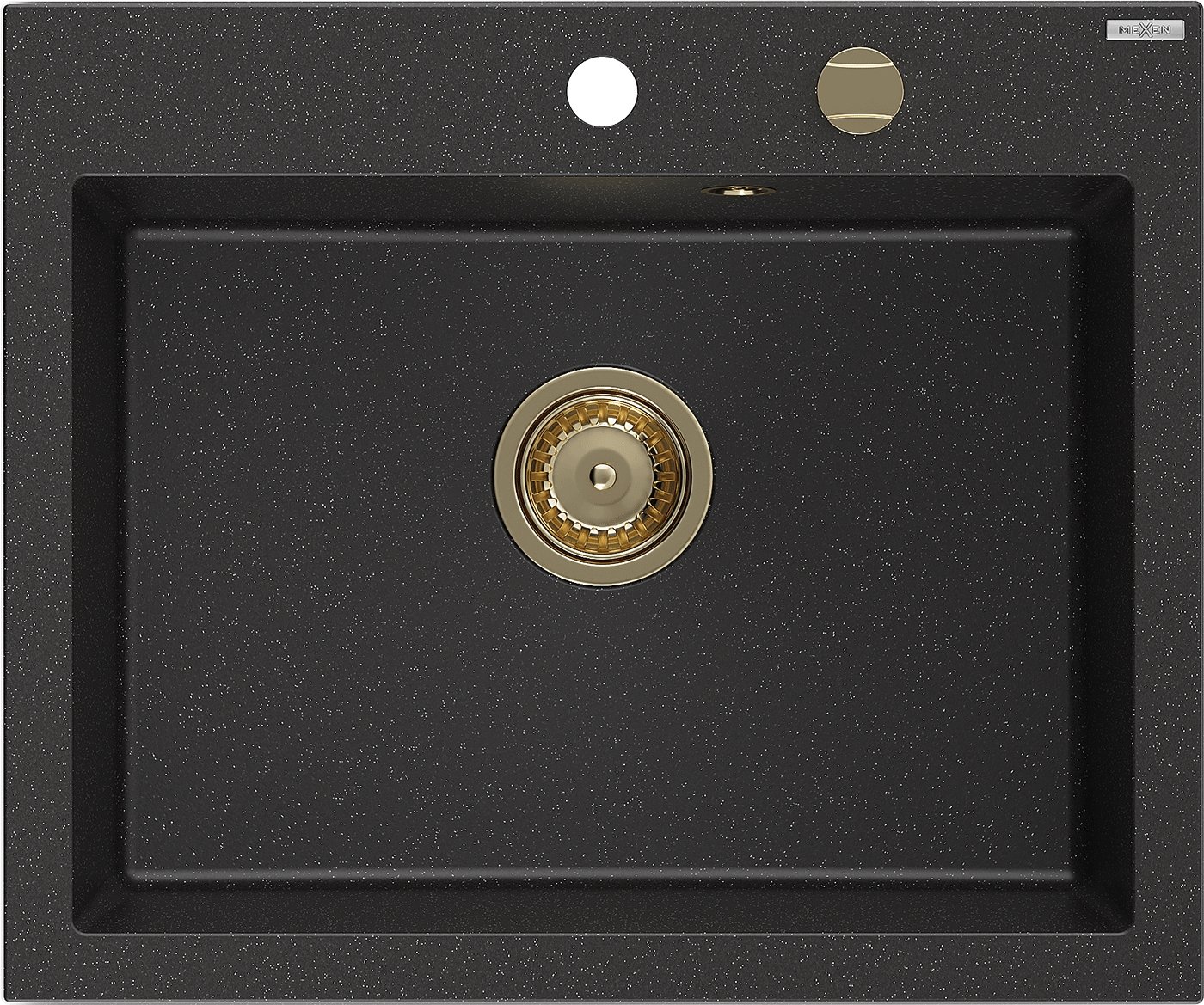 Mexen Elix гранитна мивка с 1 отделение 600 x 500 мм, черен/сребрист металик,