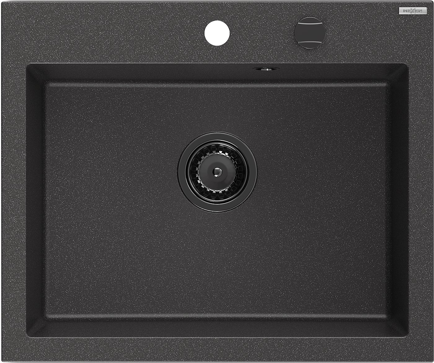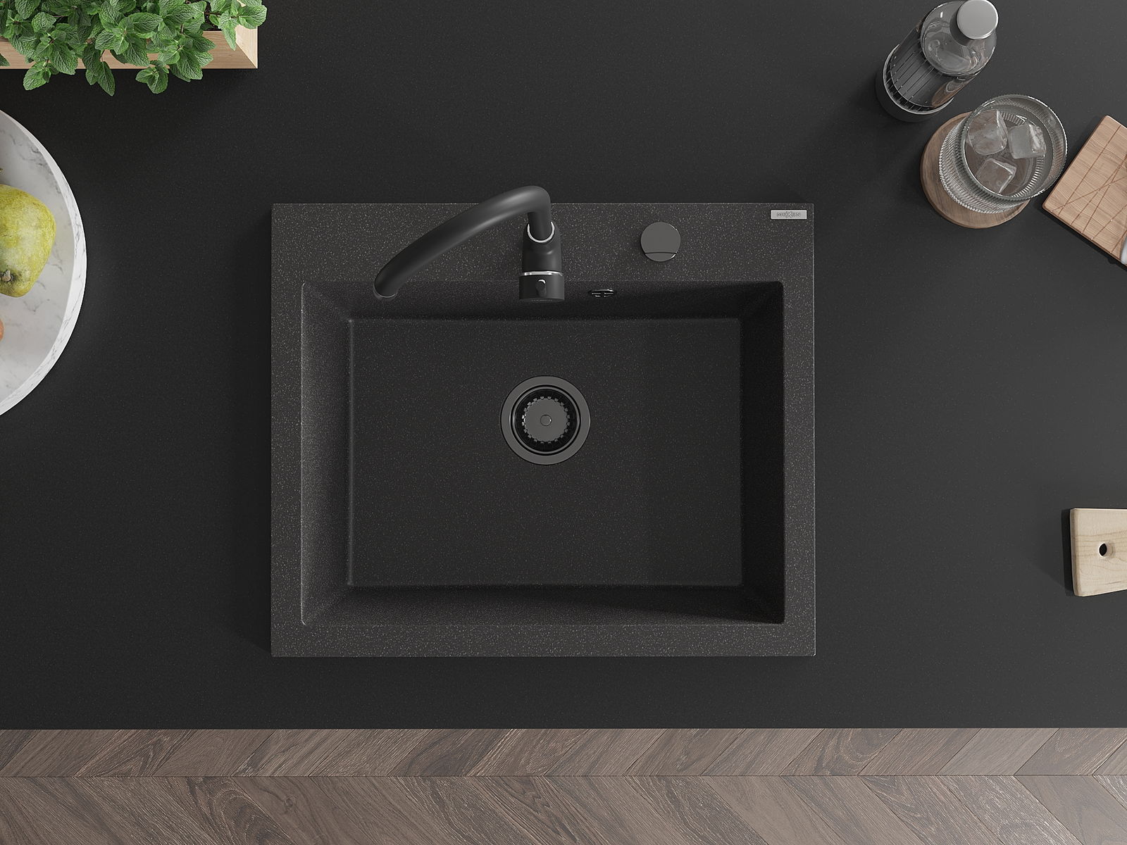 Mexen Elix Гранитна мивка с 1 отделение 600 x 500 mm, черно накрапано, черен сифон - 6525601005-76-B