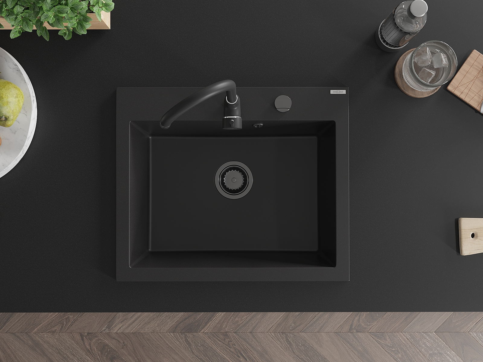 Мивката разполага с предварително издълбан отвор с диаметър 35 мм за самостоятелно изключване. Може да се използва, наред с други неща, за монтаж на дозатор за течност, който ще елиминира наличието на пластмасови бутилки в кухнята и ще й придаде елегантно завършване.