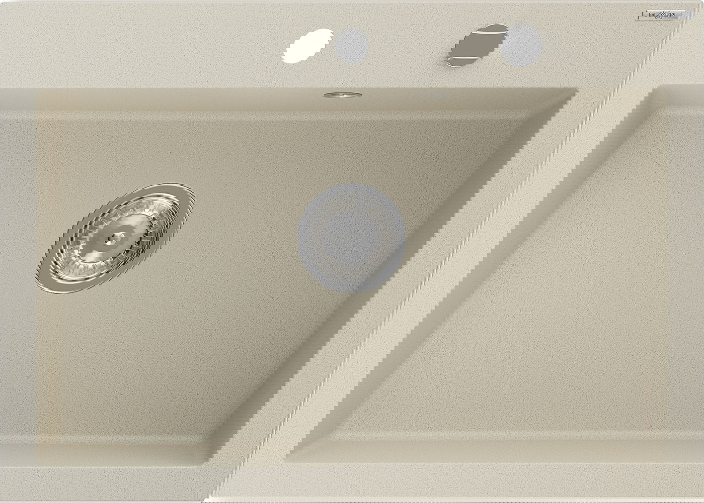 Мивката разполага с предварително издълбан отвор с диаметър 35 мм за самостоятелно изключване. Може да се използва, наред с други неща, за монтаж на дозатор за течност, който ще елиминира наличието на пластмасови бутилки в кухнята и ще й придаде елегантно завършване.