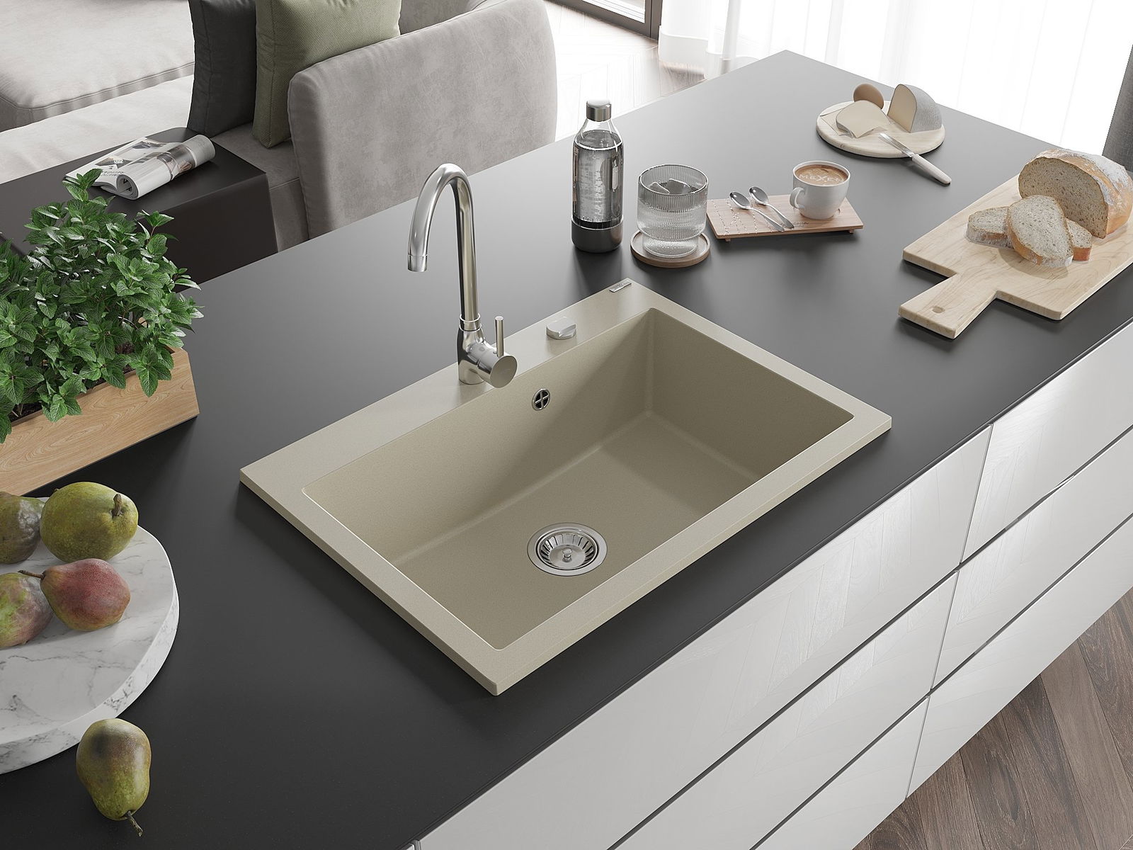 Мивката е изработена от висококачествен гранит. Тя е елегантно, но най-вече практично допълнение към всяка кухня, независимо от нейния стил. Високото качество и издръжливост на гранита осигуряват дългогодишно използване.