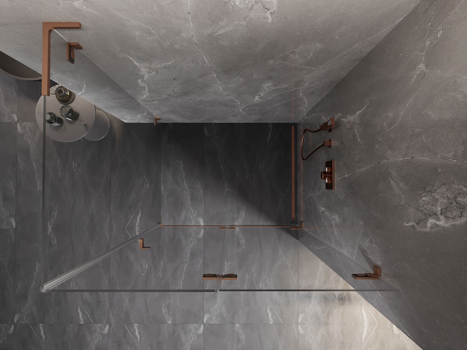 Mexen Lunar-F L кабина за душ със сгъваема врата дясна 85 x 80 cm, прозрачна, четкана мед - 836L-085-080-65-00-P