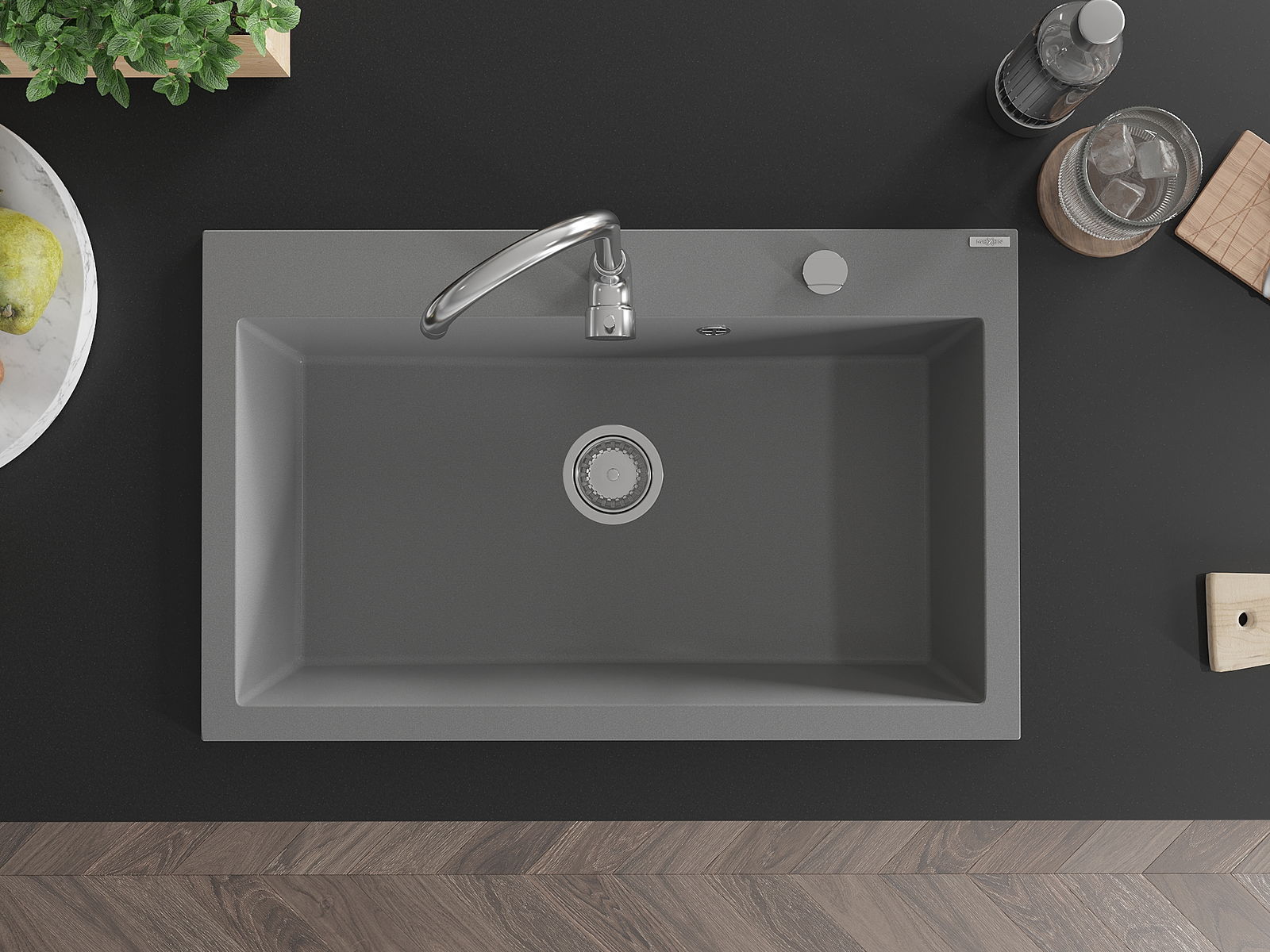Мивката разполага с предварително издълбан отвор с диаметър 35 мм за самостоятелно изключване. Може да се използва, наред с други неща, за монтаж на дозатор за течност, който ще елиминира наличието на пластмасови бутилки в кухнята и ще й придаде елегантно завършване.