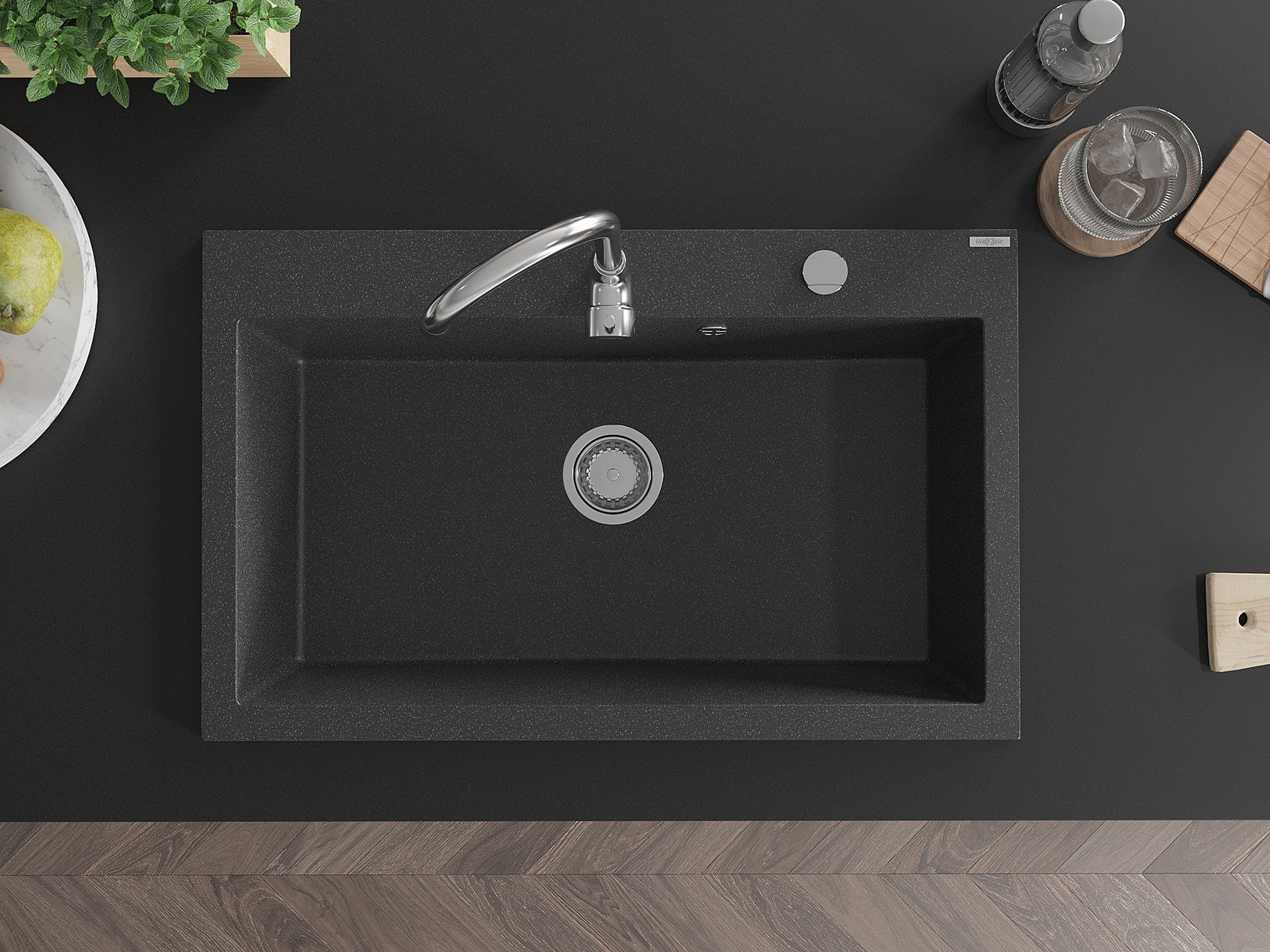 Mexen Elix гранитна мивка с 1 отделение 800 x 500 мм, черна с пръски, сифон хром - 6527801005-76