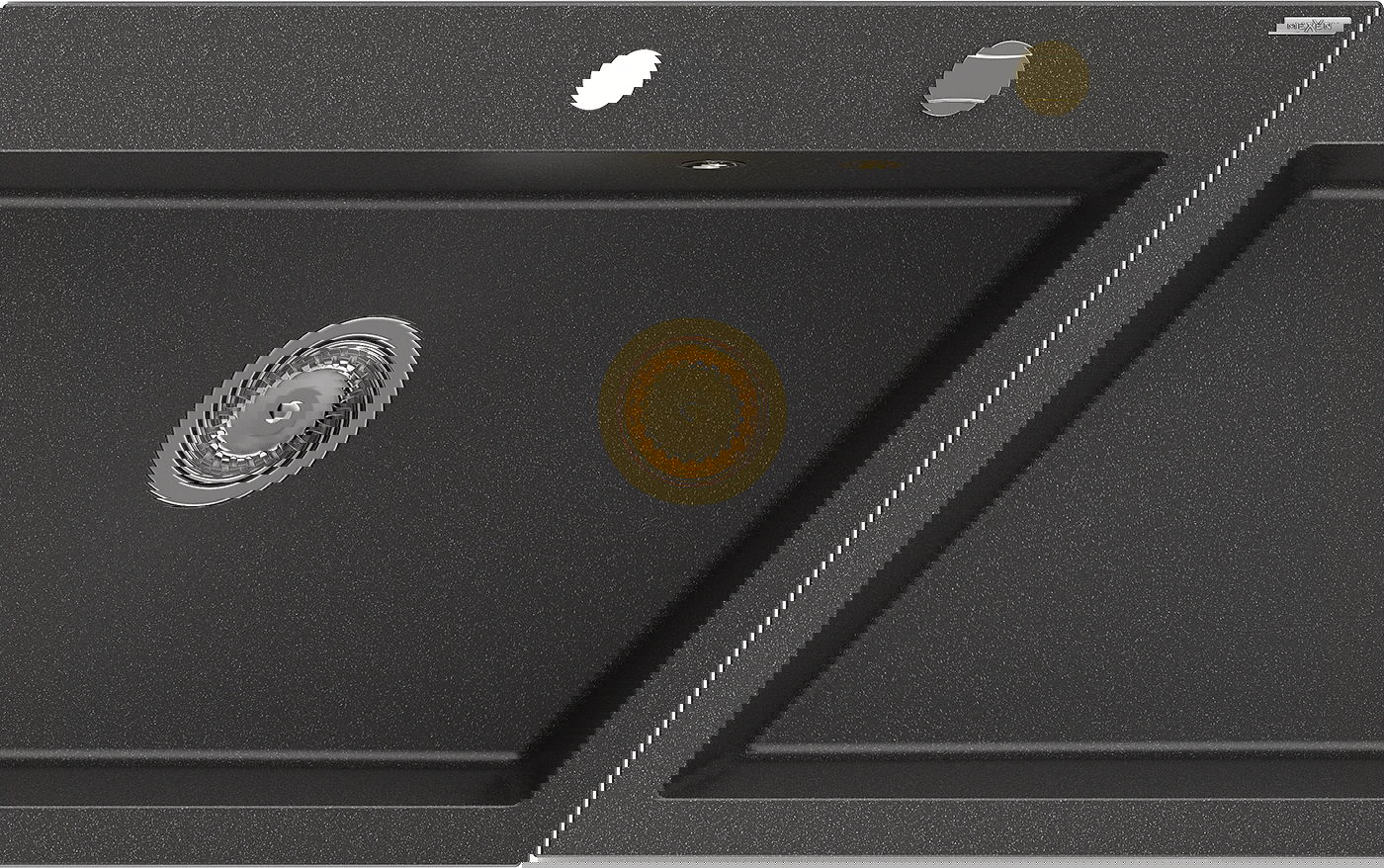 Мивката разполага с предварително издълбан отвор с диаметър 35 мм за самостоятелно изключване. Може да се използва, наред с други неща, за монтаж на дозатор за течност, който ще елиминира наличието на пластмасови бутилки в кухнята и ще й придаде елегантно завършване.