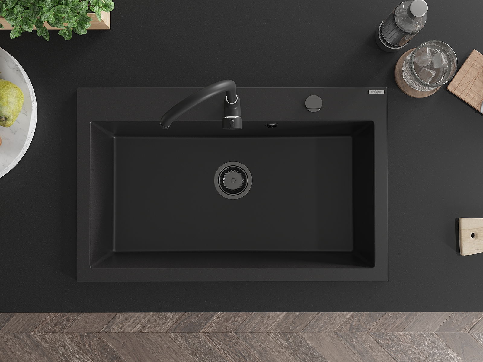 Мивката разполага с предварително издълбан отвор с диаметър 35 мм за самостоятелно изключване. Може да се използва, наред с други неща, за монтаж на дозатор за течност, който ще елиминира наличието на пластмасови бутилки в кухнята и ще й придаде елегантно завършване.