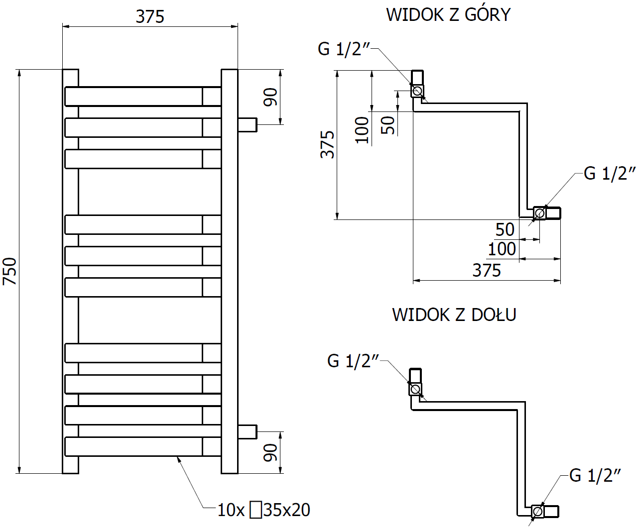 Mexen Loop ъглов радиатор за баня 750 x 375 мм, 413 W, антрацит - W129-0750-350-00-66