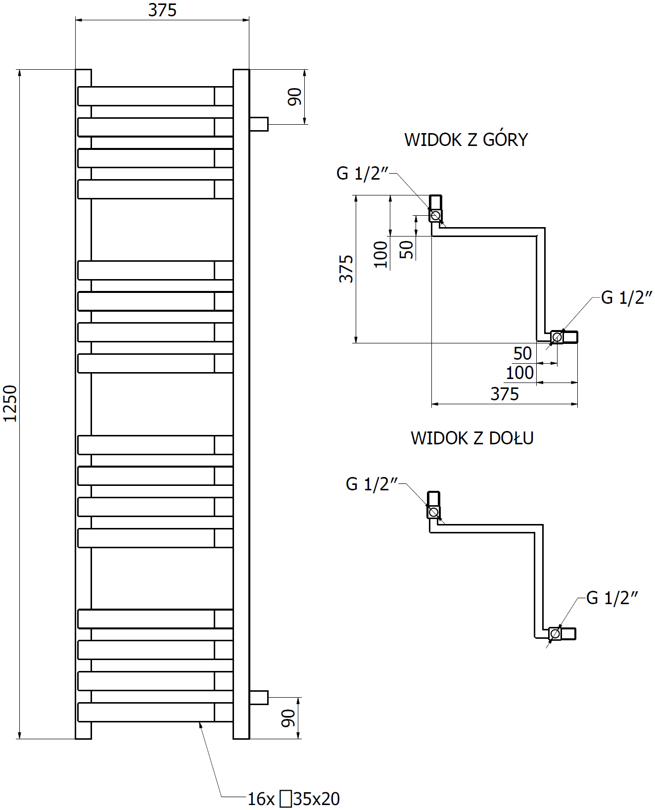 - 4xG ½″ от горе и отдолу от дясната или лявата страна
