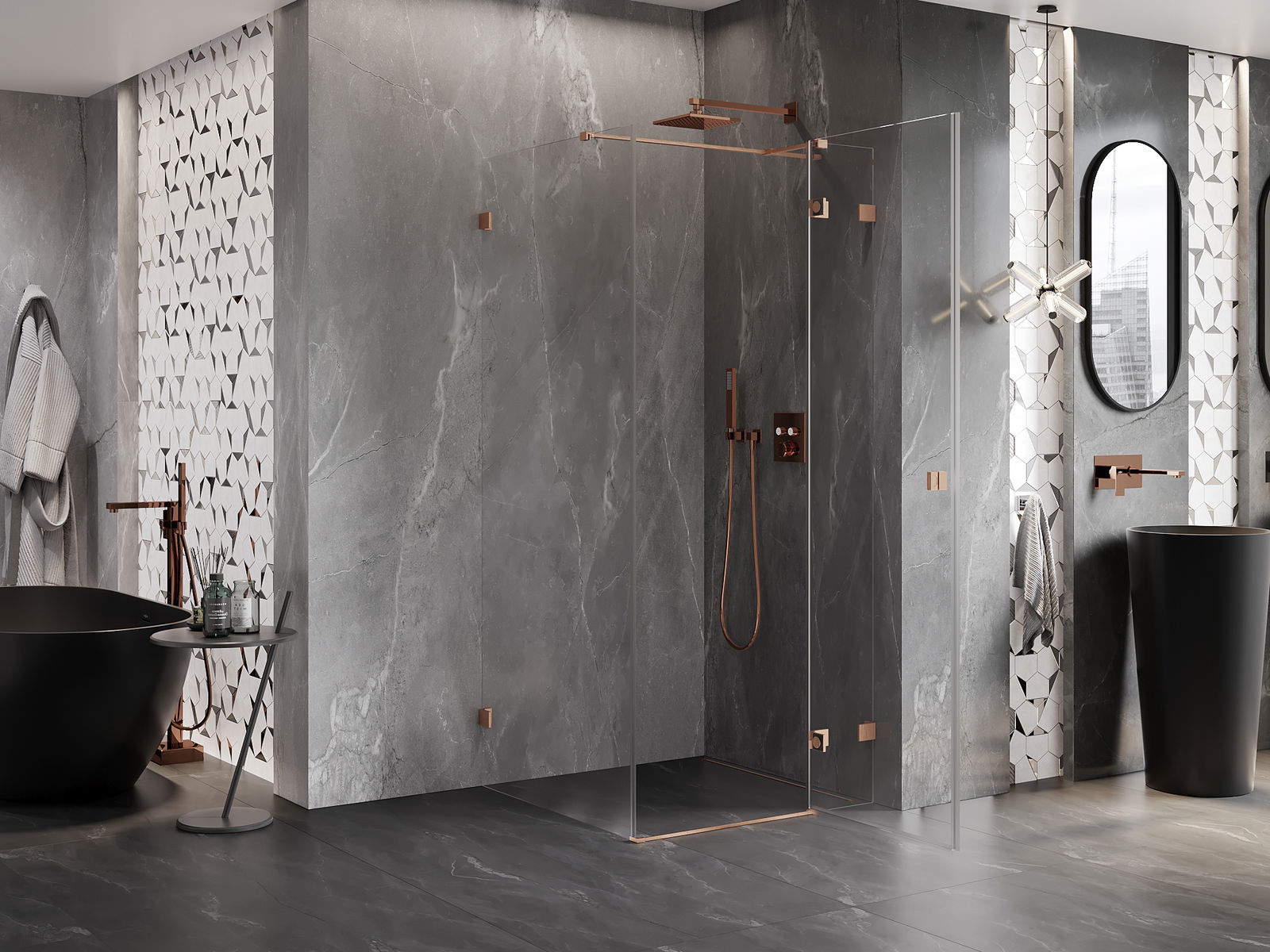 Скобите и пантите са изработени от много издръжлив месинг и създават плосък стъклен панел. Това е отличен избор, който съчетава елегантност, издръжливост и модерен дизайн. Благодарение на такива решения, душът придобива естетика и същевременно улеснява поддържането на чистота.