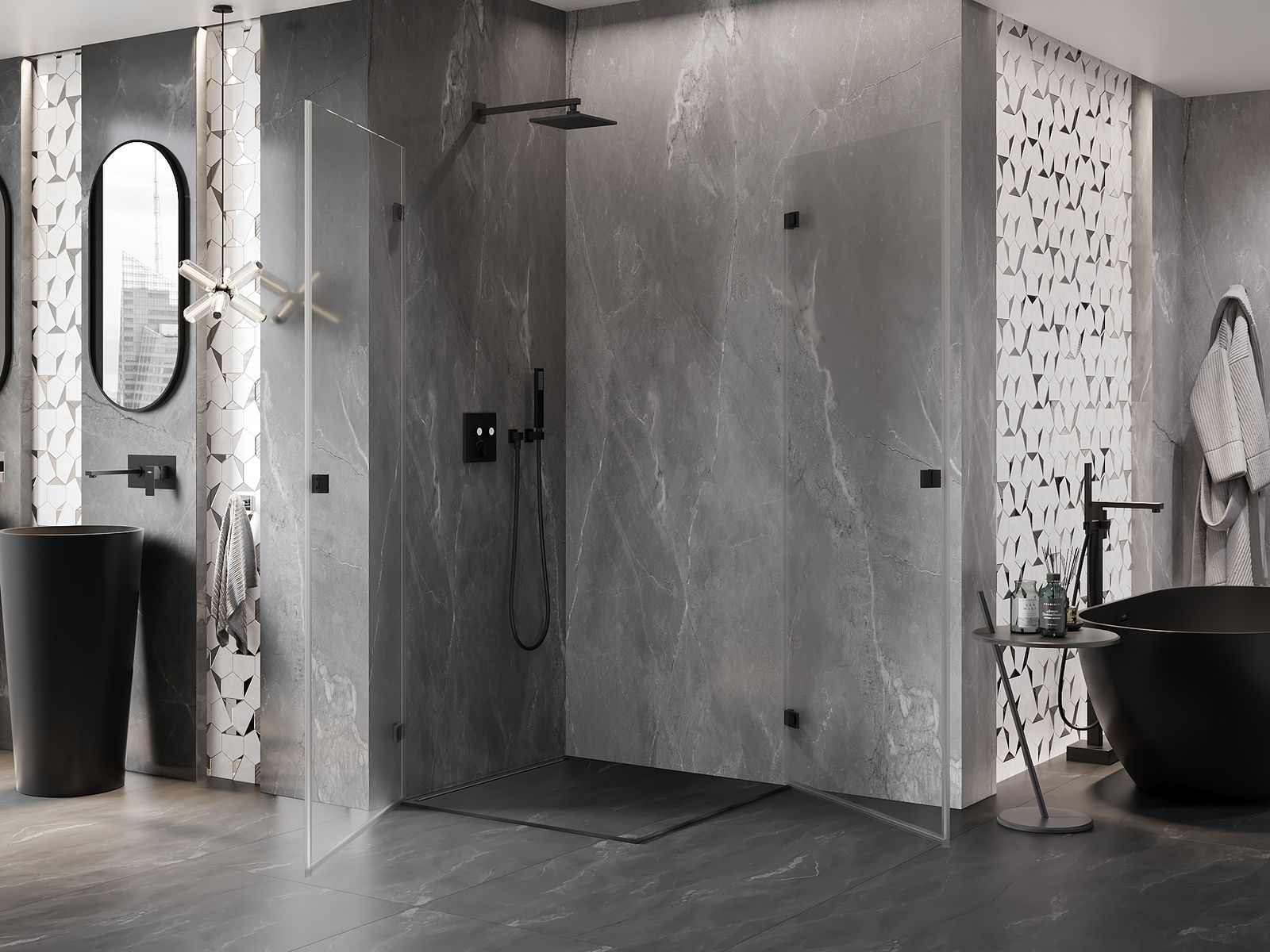 Mexen Lunar-B Duo душ кабина с отваряща се врата 90 x 90 cm, прозрачна, черна - 832-090L-090P-70-00
