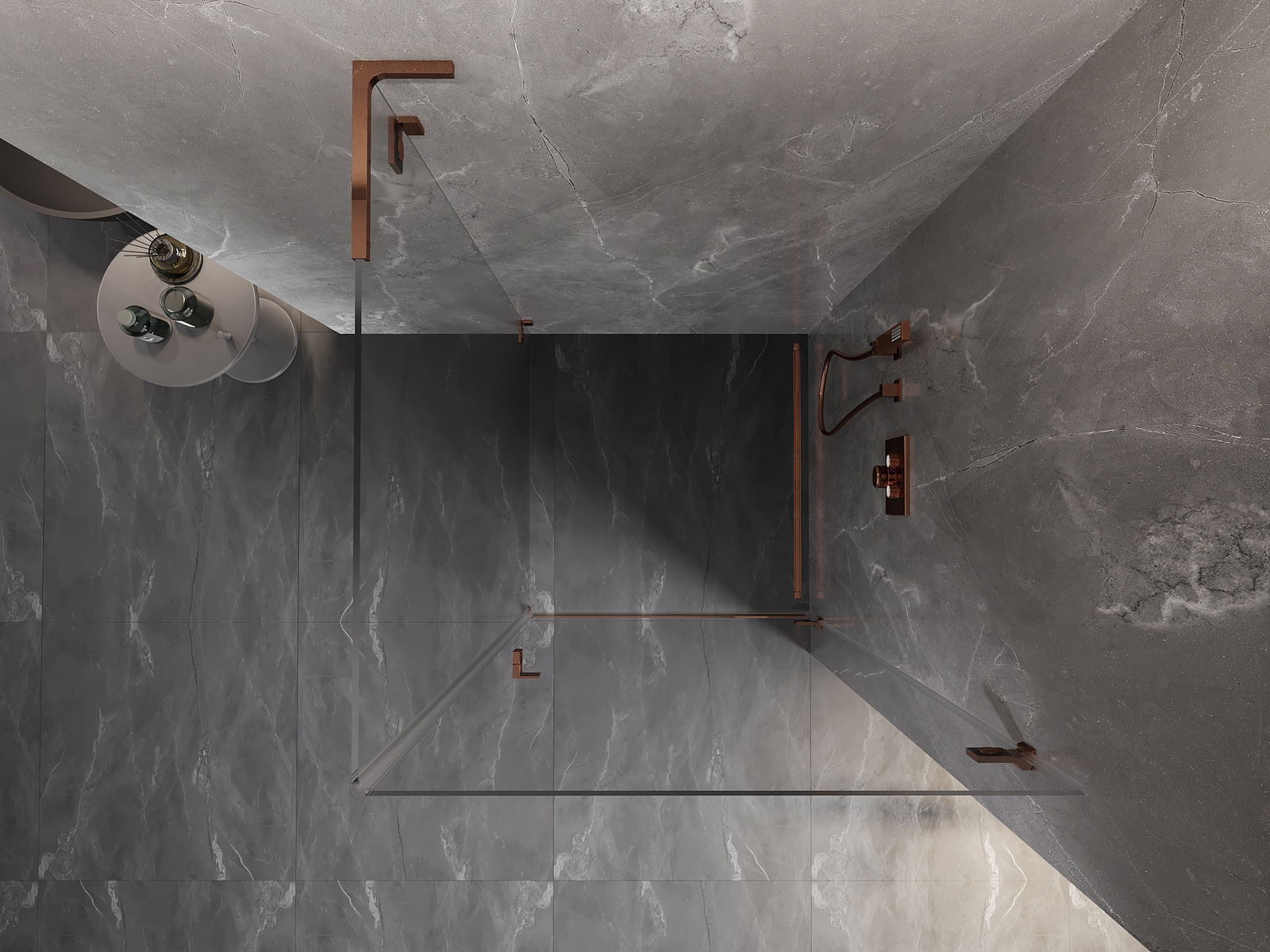 Mexen Lunar-B L кабина за душ плъзгаща се дясна 70 x 70 см, прозрачно, розово злато - 832L-070-070-60-00-P