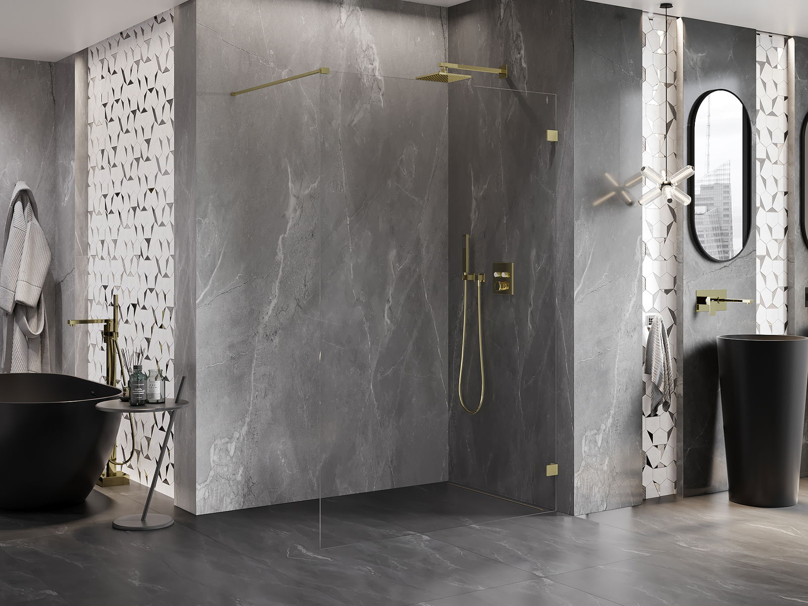 Mexen Lunar стена за душ Walk-in дясна 160 x 200 см, прозрачна 8 мм, златиста четкана - 830-160-000-55-00-P