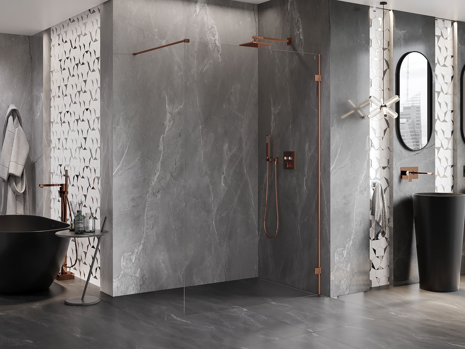 Скобите са изработени от много здрав месинг и създават изравнена повърхност на стъклото. Това е отличен избор, който съчетава елегантност, издръжливост и модерен дизайн. Благодарение на тези решения душът получава естетическа стойност и същевременно улеснява поддържането на чистота.