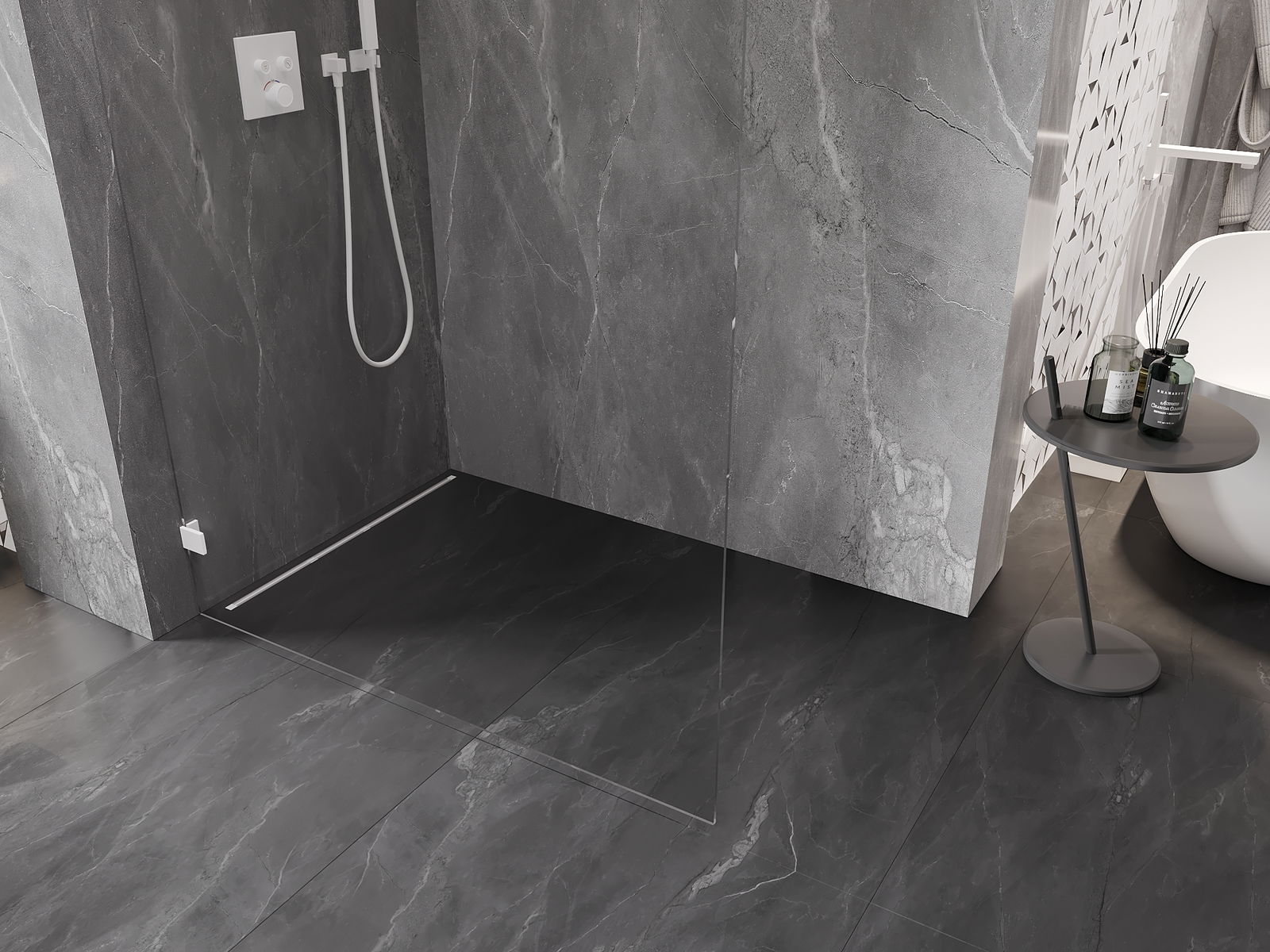 Mexen Lunar L Стъклена стена за душ Walk-in лява 110 x 200 см, прозрачна 8 мм, бяла - 830L-110-000-20-00-L