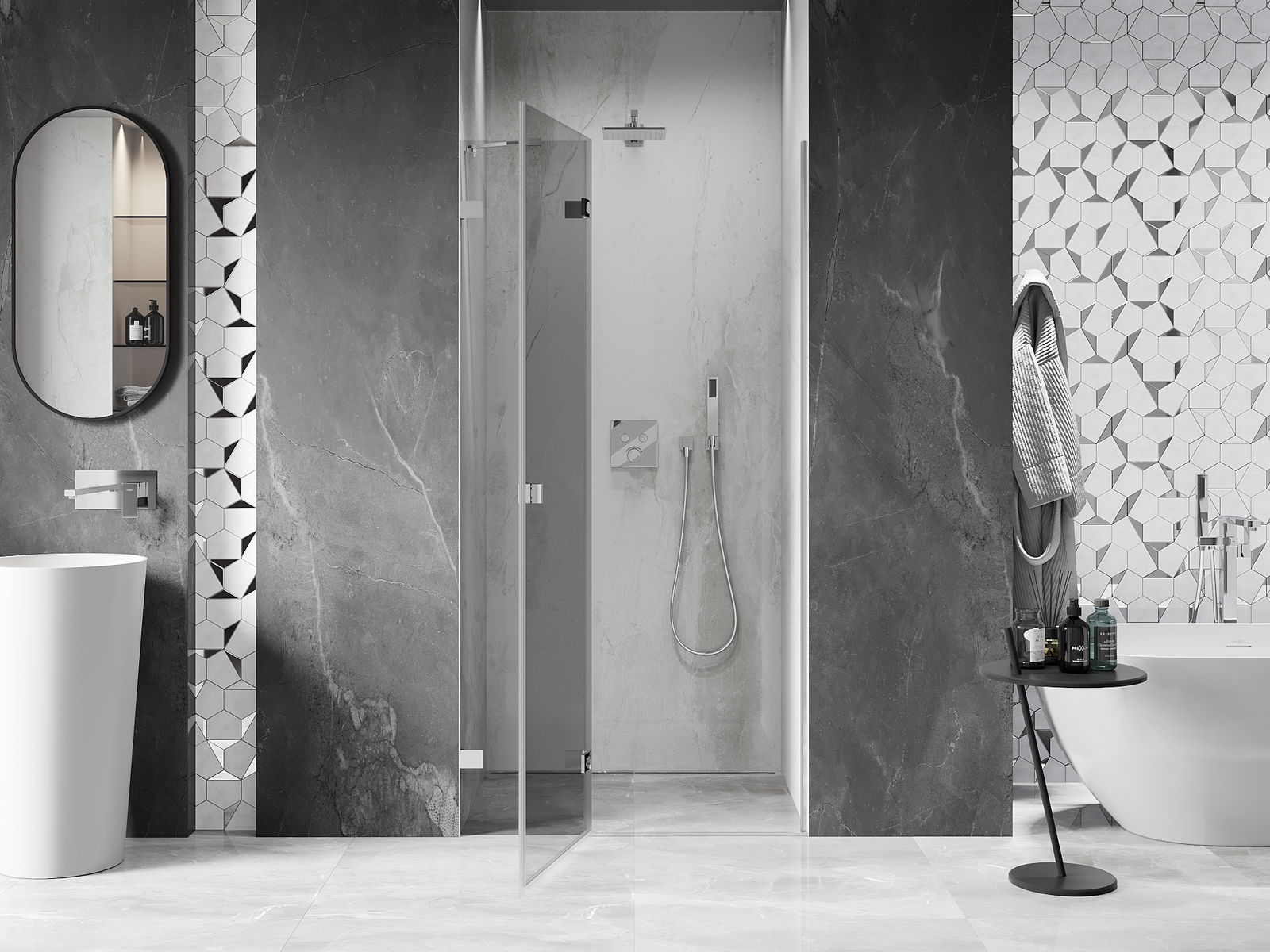 Скобите и пантите са изработени от много издръжлив месинг и създават плосък стъклен панел. Това е отличен избор, който съчетава елегантност, издръжливост и модерен дизайн. Благодарение на такива решения, душът придобива естетика и същевременно улеснява поддържането на чистота.