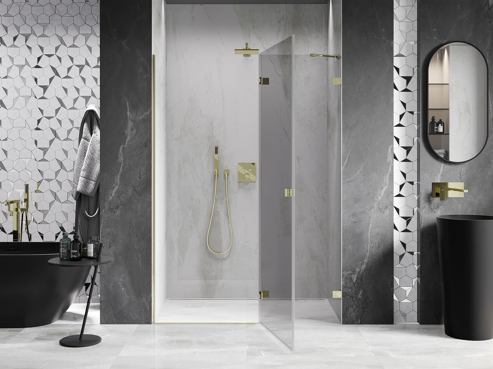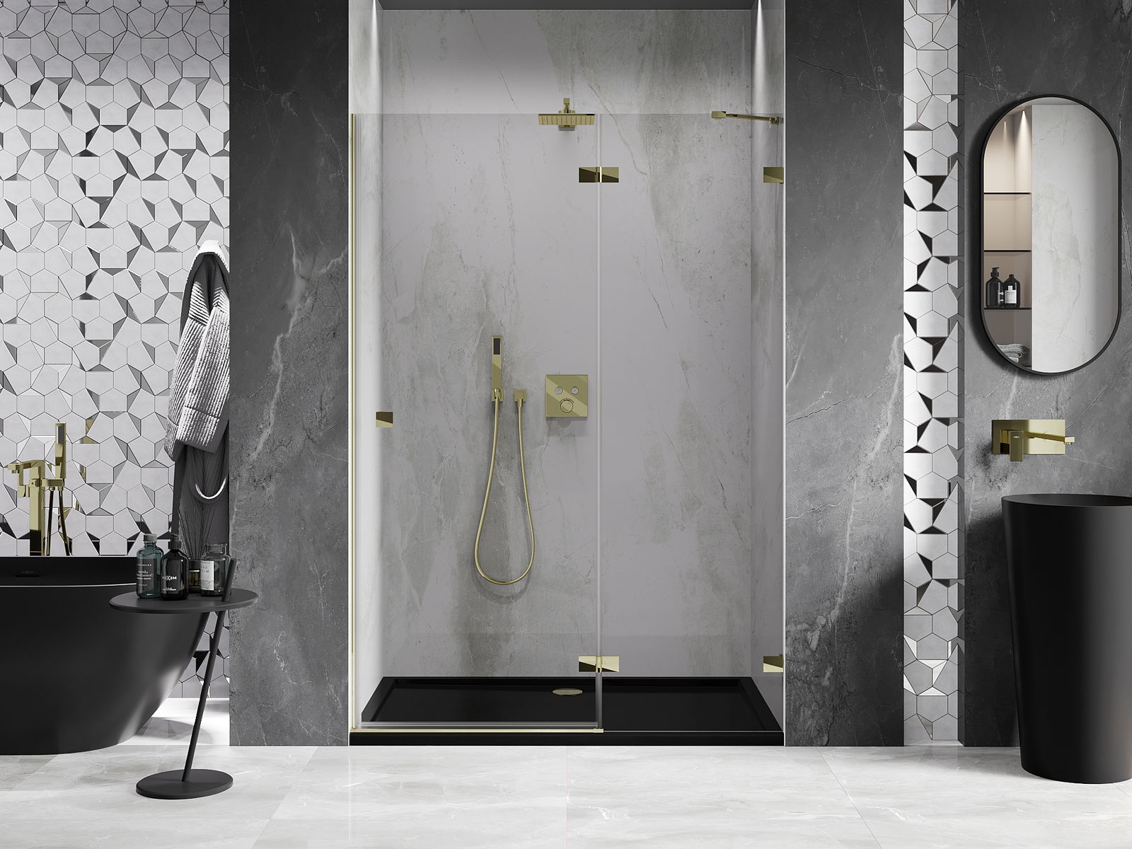 Mexen Lunar врата за душ кабина, десен монтаж, 140 см, прозрачни, златни - 834-140-000-50-00-P