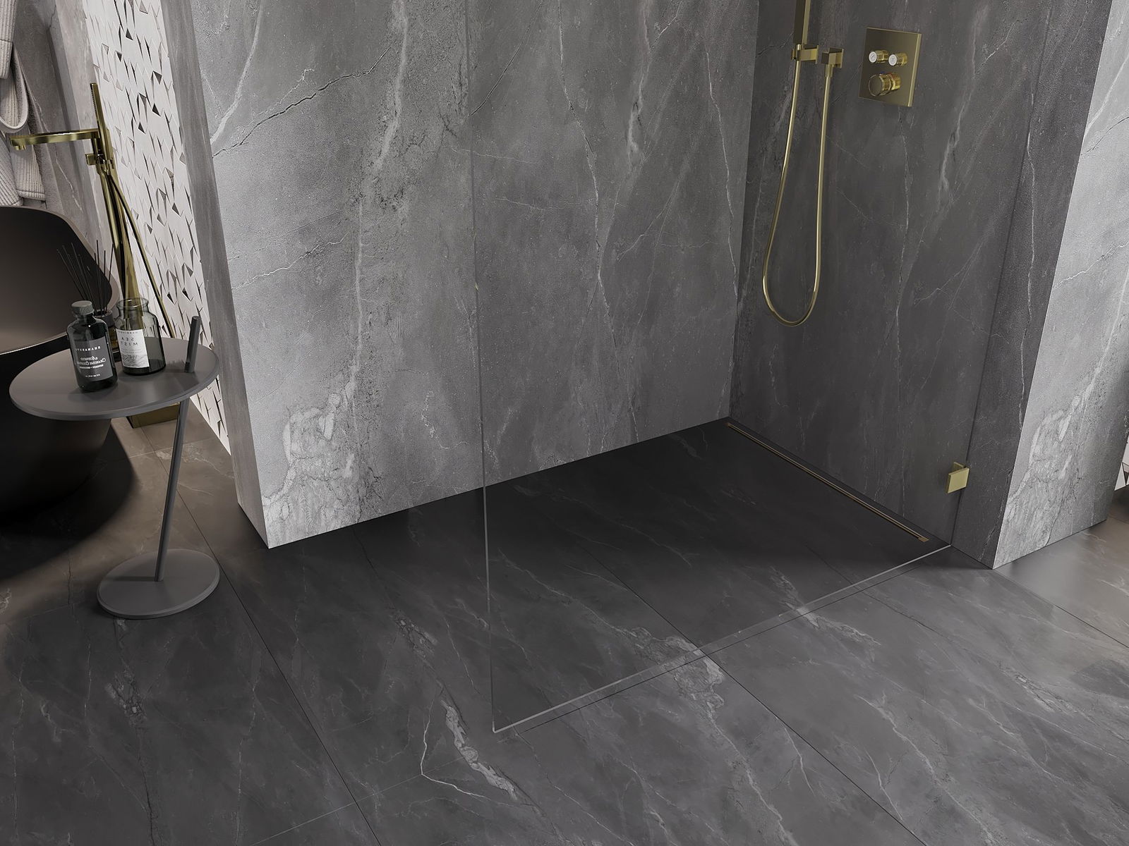 Mexen Lunar L стъклена стена за душ Walk-in дясна 50 x 200 см, прозрачна 8 мм, златна четка - 830L-050-000-55-00-P