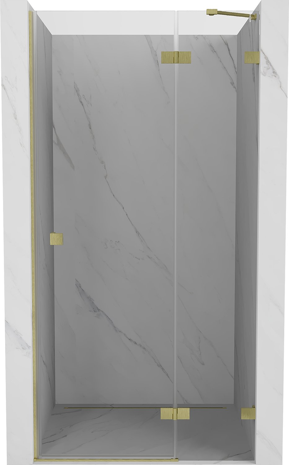Mexen Lunar Стъклена душ кабина с отваряща се врата, дясна 85 см, прозрачна, матово злато - 834-085-000-55-00-P