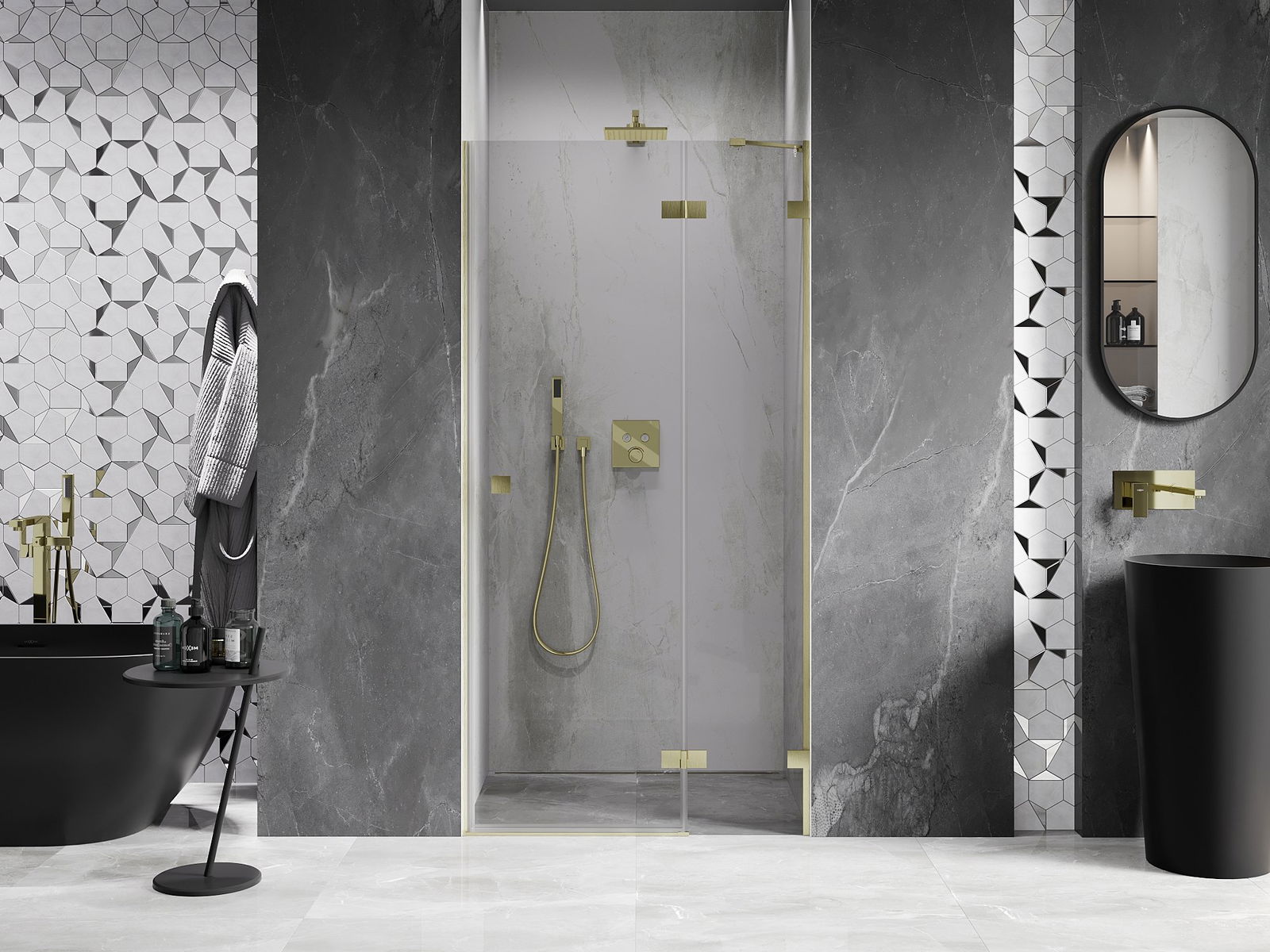 Скобите и пантите са изработени от много издръжлив месинг и създават плосък стъклен панел. Това е отличен избор, който съчетава елегантност, издръжливост и модерен дизайн. Благодарение на такива решения, душът придобива естетика и същевременно улеснява поддържането на чистота.