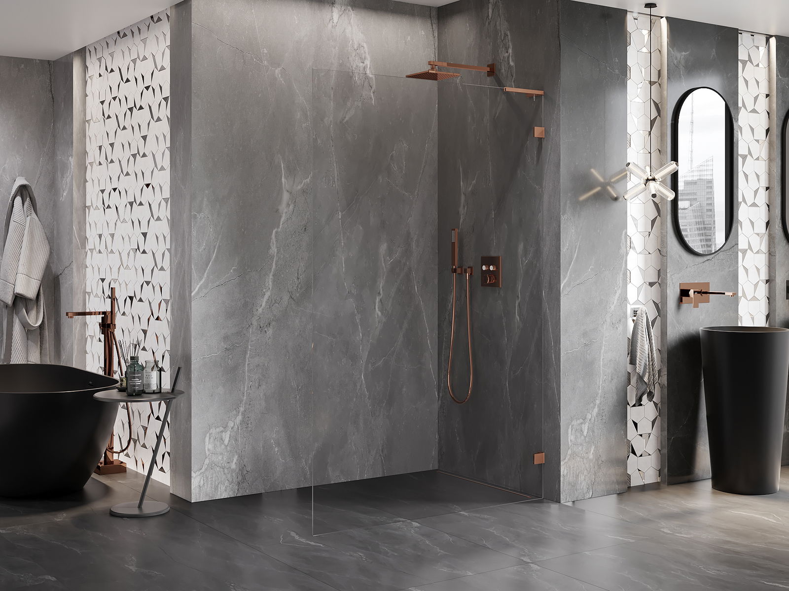 Скобите са изработени от много здрав месинг и създават изравнена повърхност на стъклото. Това е отличен избор, който съчетава елегантност, издръжливост и модерен дизайн. Благодарение на тези решения душът получава естетическа стойност и същевременно улеснява поддържането на чистота.