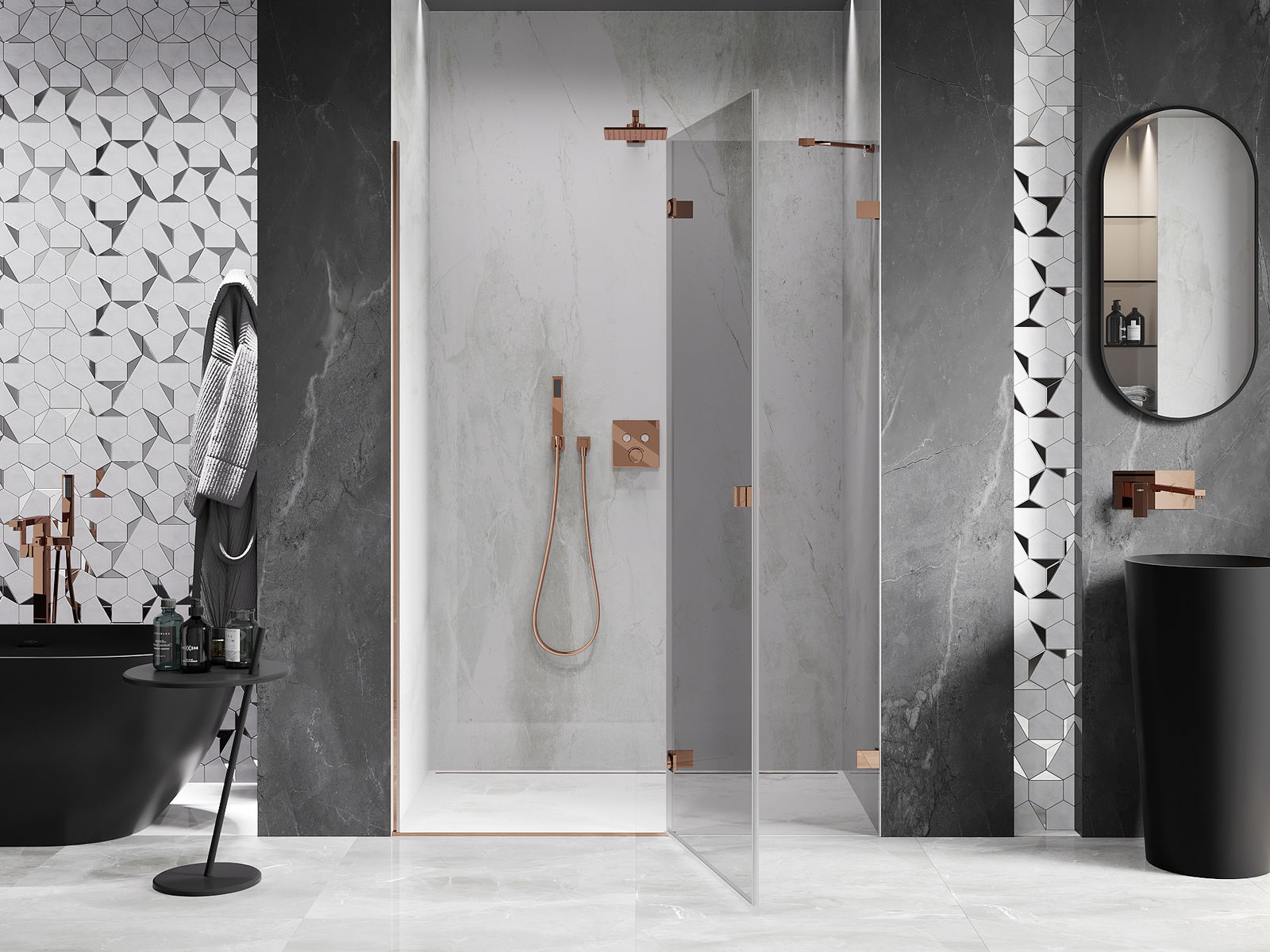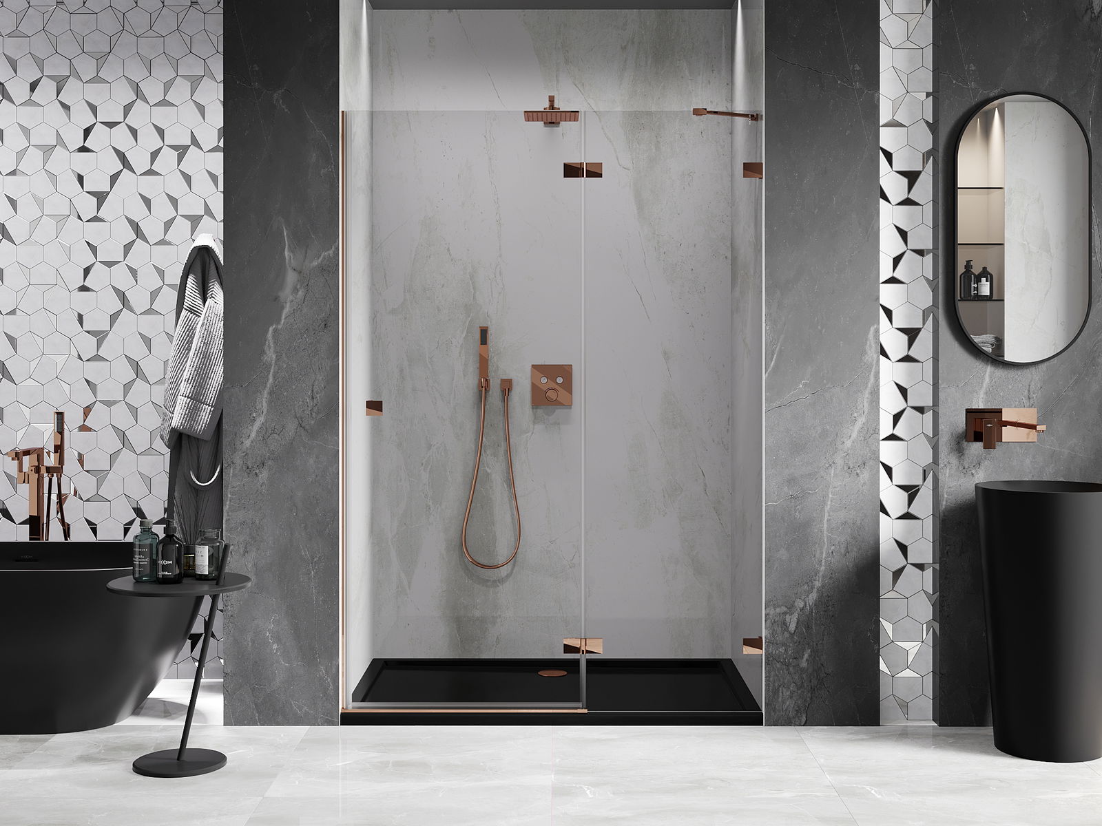 Mexen Lunar душ врати, десни отваряеми 140 см, прозрачни, розово злато - 834-140-000-60-00-P