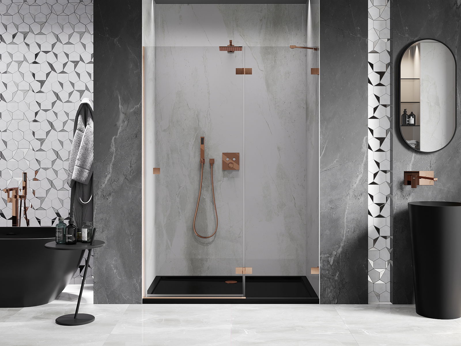 Mexen Lunar врати за душ кабина, дясни, 135 см, прозрачни, матирано медно - 834-135-000-65-00-P