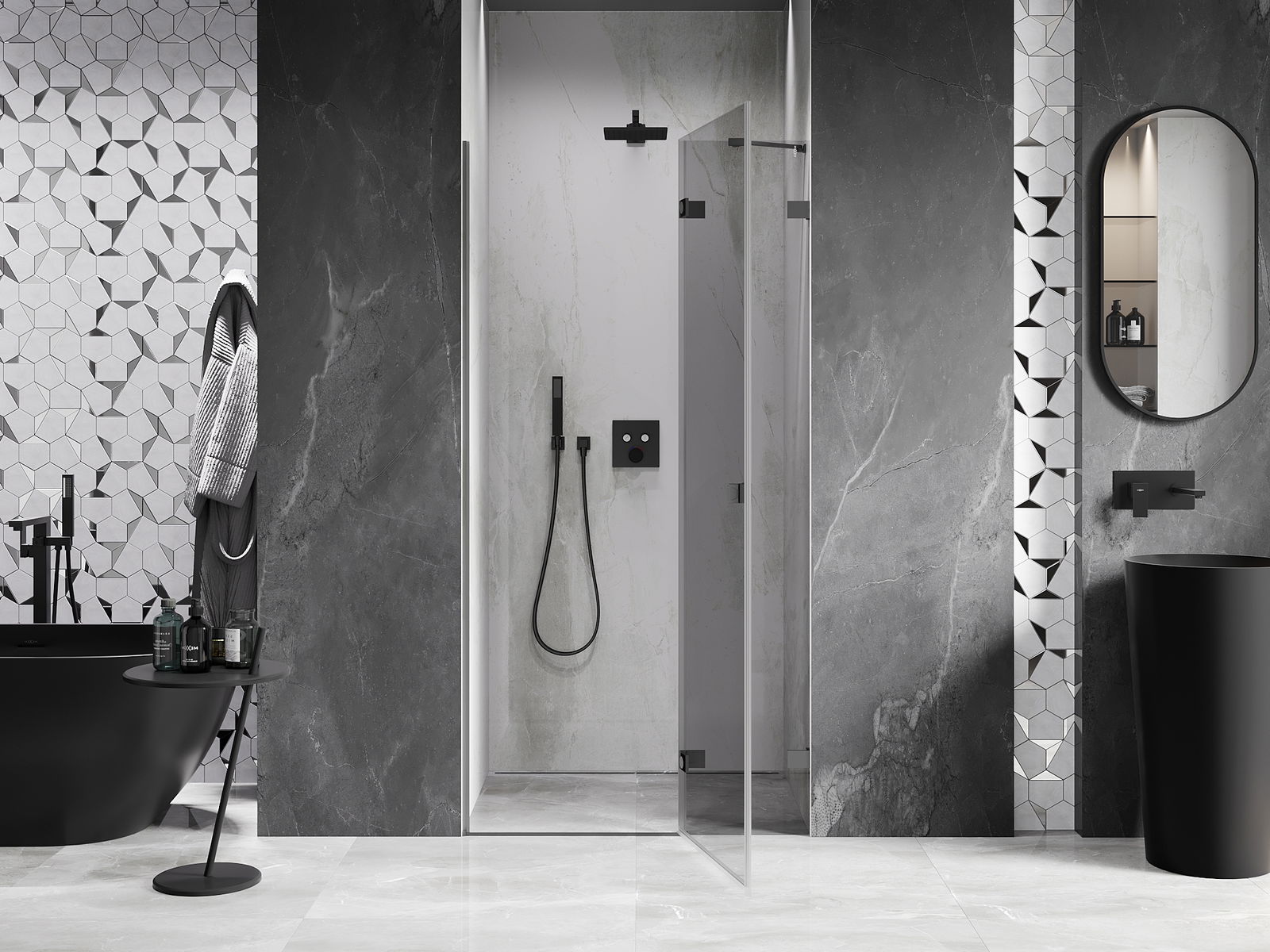 Mexen Lunar врата за душ кабина, отваряеми надясно, 90 см, прозрачно, черен метал - 834-090-000-95-00-P