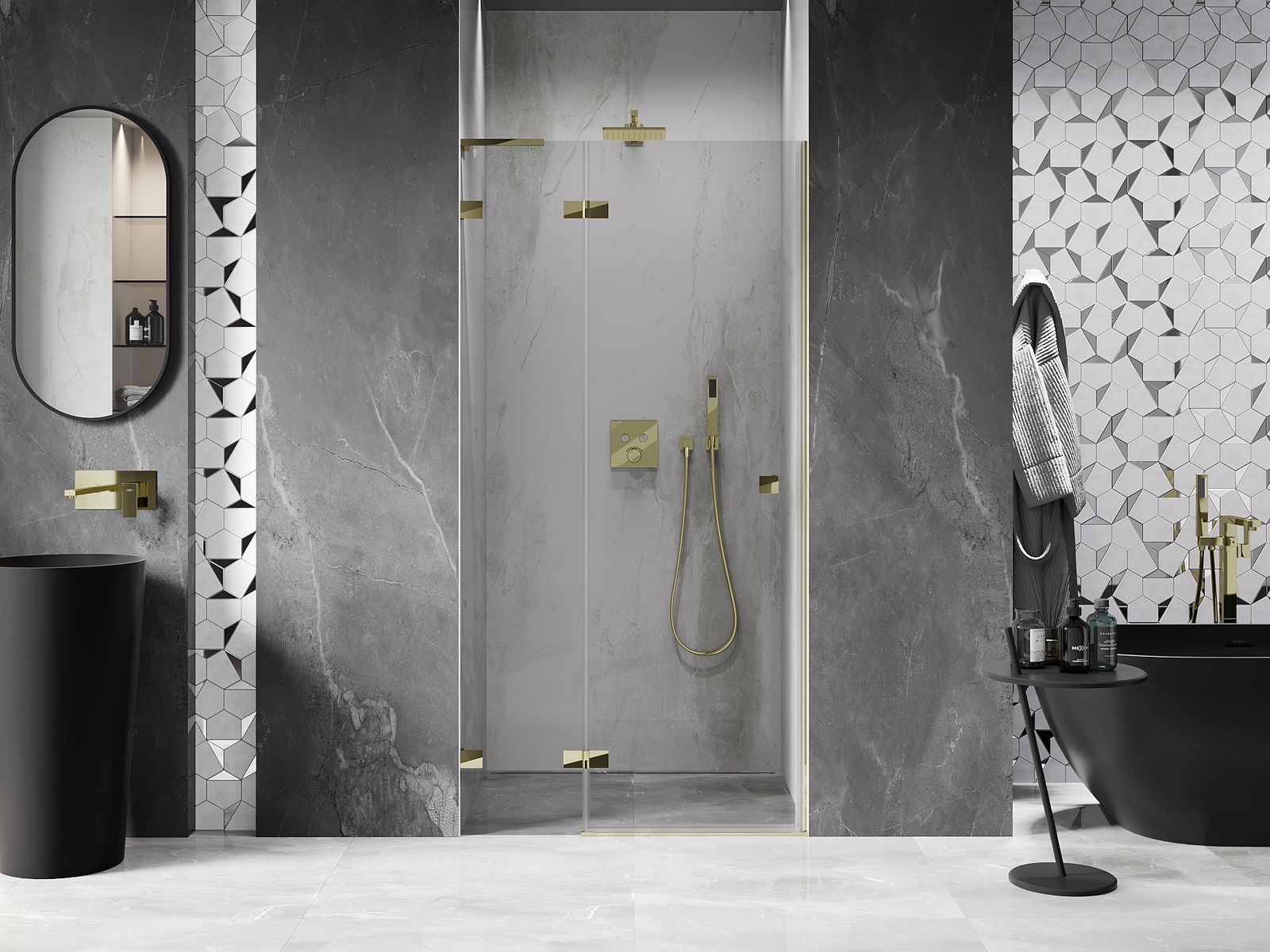 Скобите и пантите са изработени от много издръжлив месинг и създават плосък стъклен панел. Това е отличен избор, който съчетава елегантност, издръжливост и модерен дизайн. Благодарение на такива решения, душът придобива естетика и същевременно улеснява поддържането на чистота.