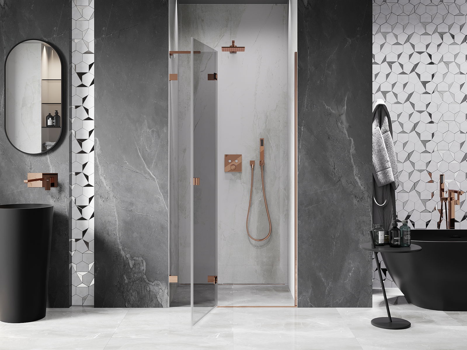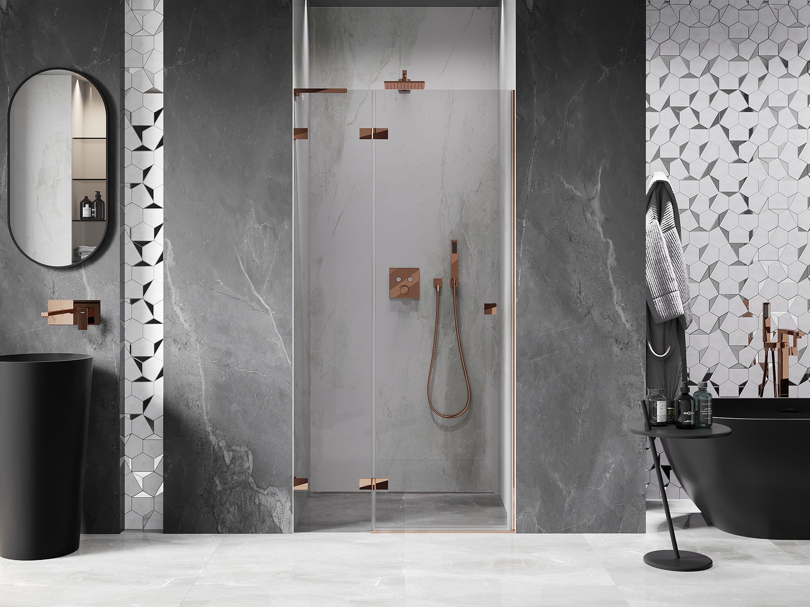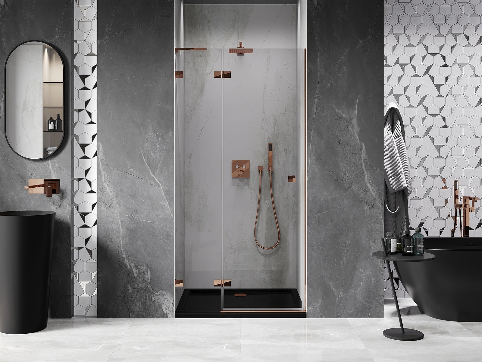 Mexen Lunar L лява душ врата 95 см, прозрачна, розово злато - 834L-095-000-60-00-L