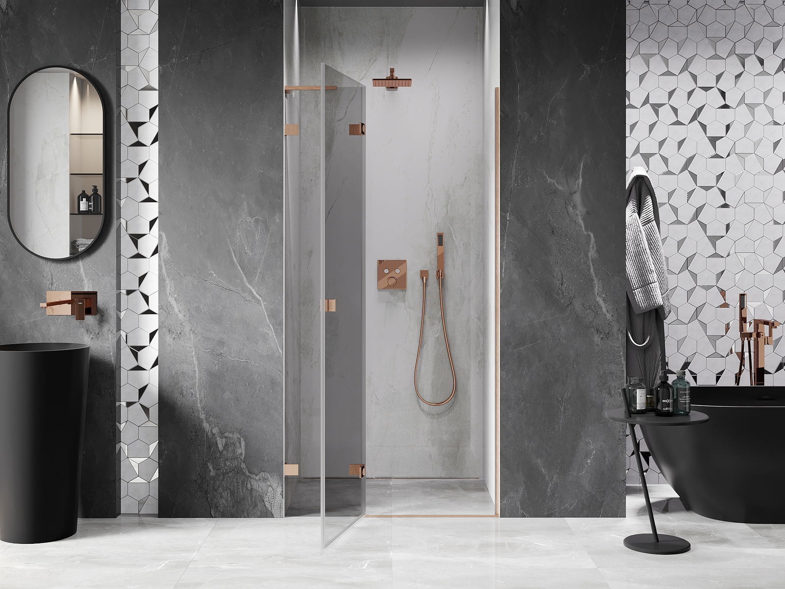 Mexen Lunar L душ кабина с врати ляво отваряне 85 см, прозрачна, матиран мед - 834L-085-000-65-00-L