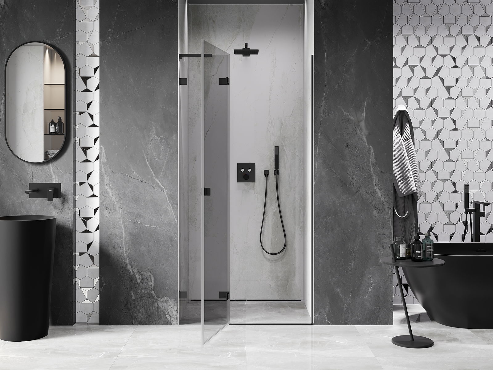 Mexen Lunar L ляво люлееща се душ врата 115 см, прозрачна, черна - 834L-115-000-70-00-L