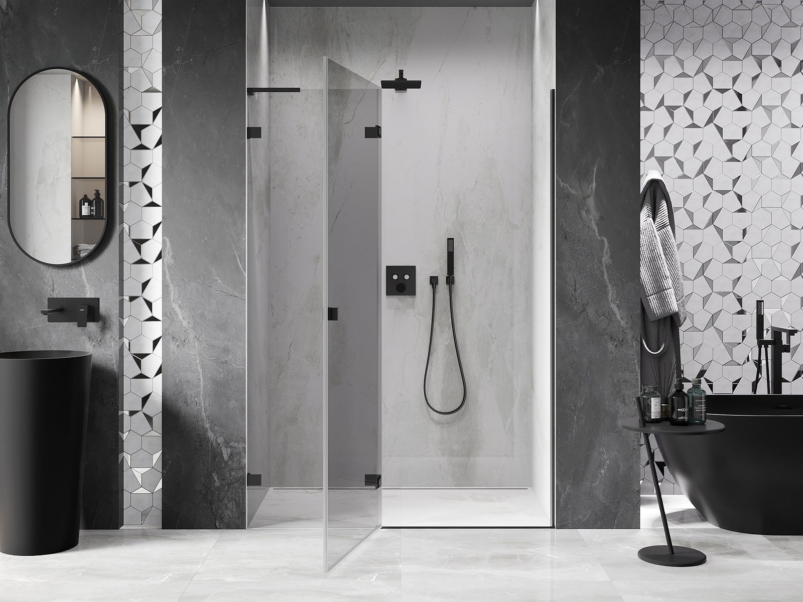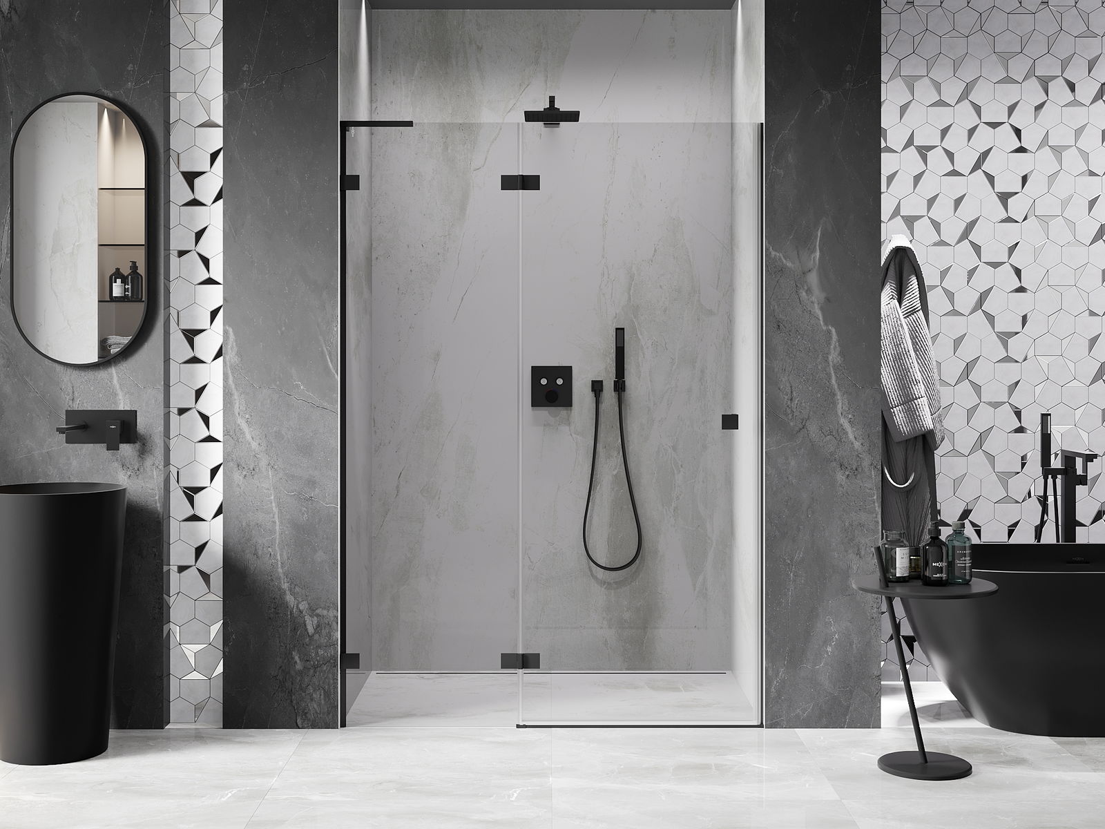 Mexen Lunar L лява отваряща се врата за душ 130 см, прозрачна, черна - 834L-130-000-70-00-L