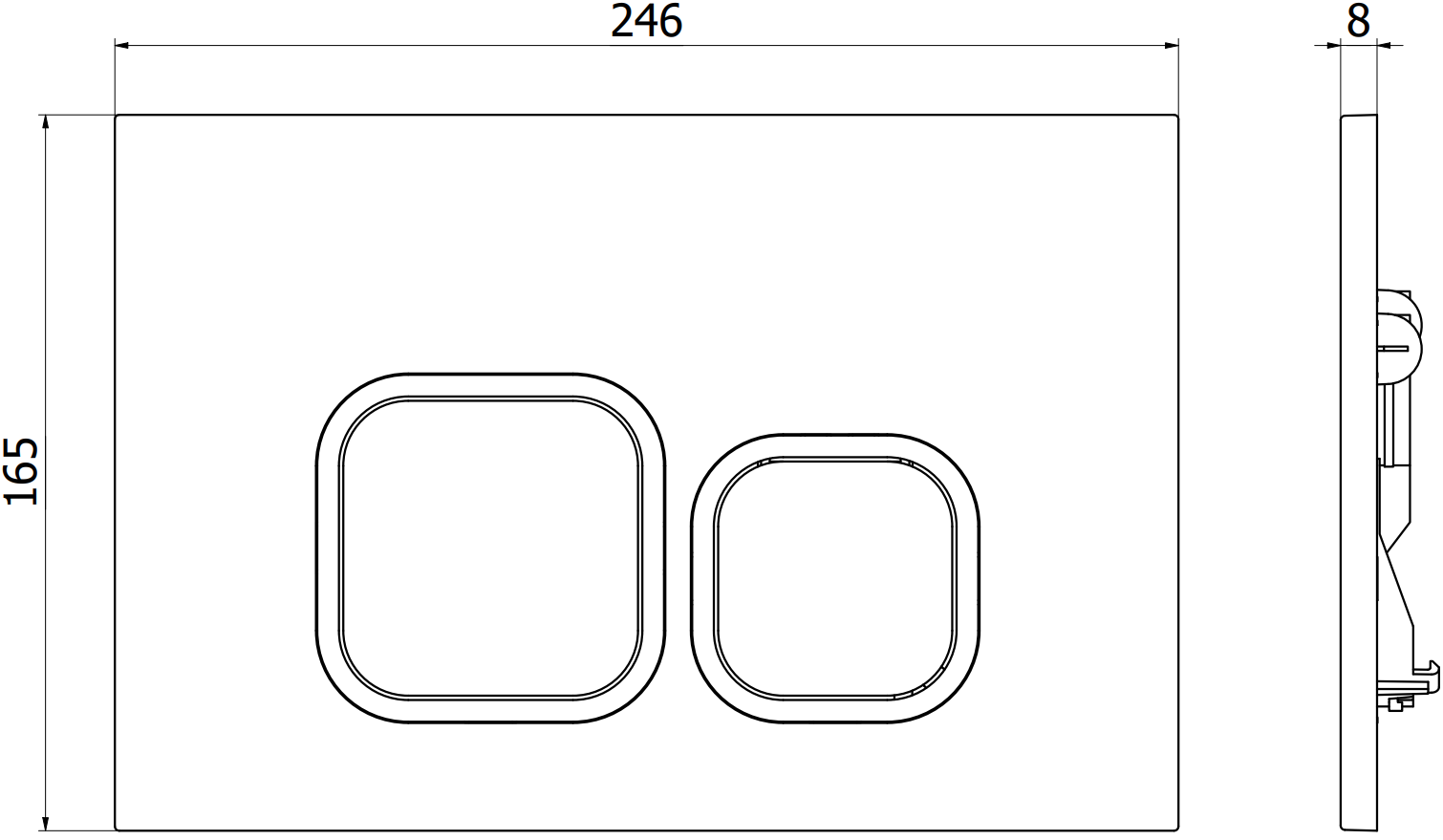 Бутонът е предназначен за надстенни конструкции, където мястото за монтаж се намира отпред на конструкцията. Благодарение на тази позиция се осигурява лесен достъп и удобна експлоатация при промиване.