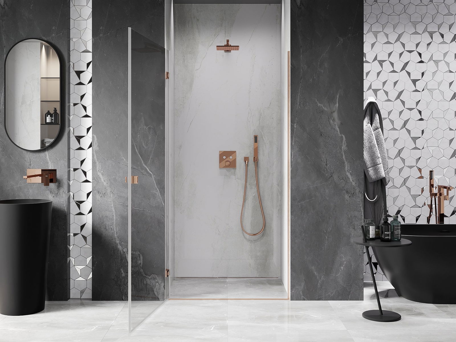 Mexen Lunar-B ляво отваряща се душ врата 65 см, прозрачна, четкана мед - 832-065-000-65-00-L