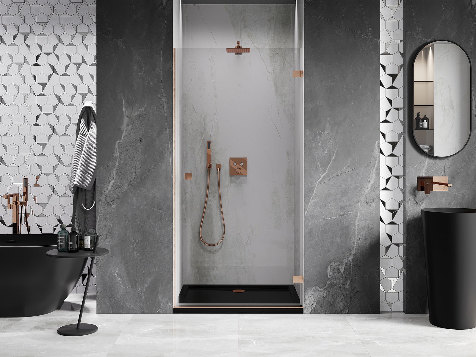 Mexen Lunar-B врата за душ кабина, отваряеми надясно, 95 см, прозрачни, четкана мед - 832-095-000-65-00-P