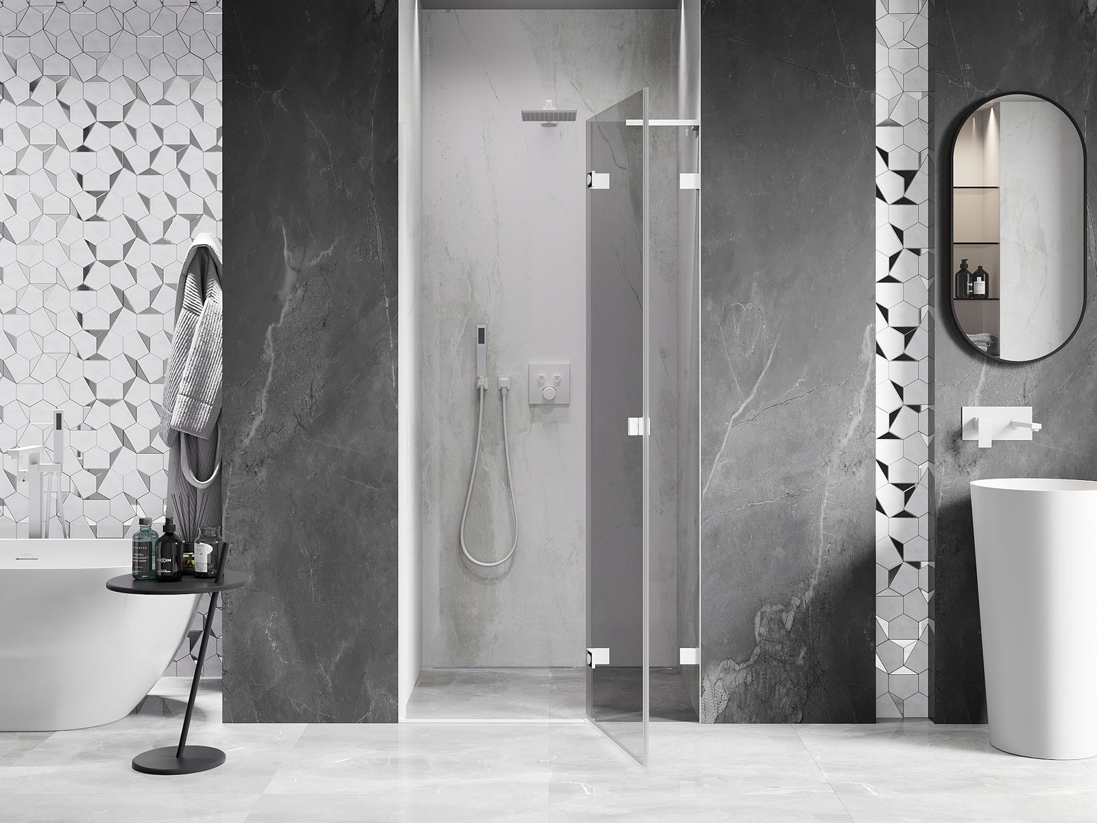 Mexen Lunar L душ врата, отварящи се надясно 90 см, прозрачни, бели - 834L-090-000-20-00-P