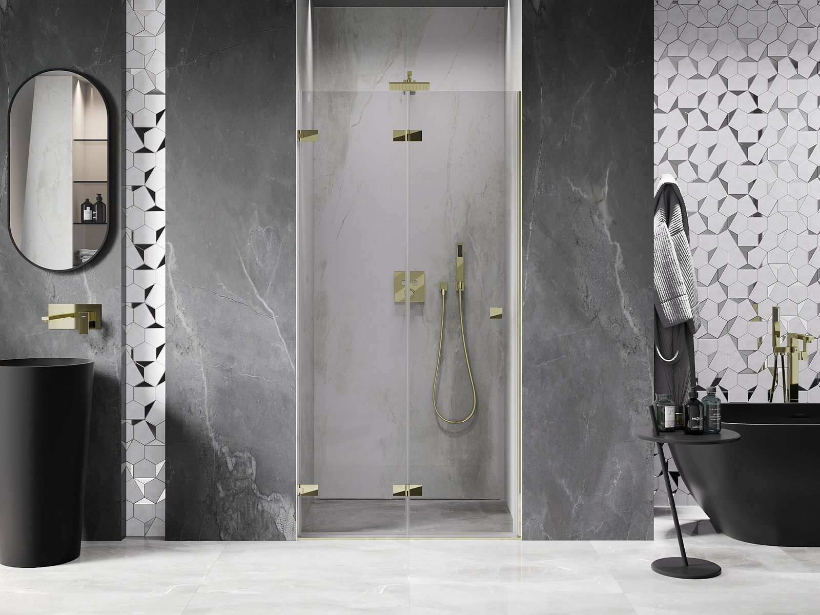 Възможността за сгъване на вратите, както навън, така и навътре, позволява да се осигури повече пространство, когато душът не се използва. Това е идеалното решение за по-малки бани, максимално използвайки наличната площ.