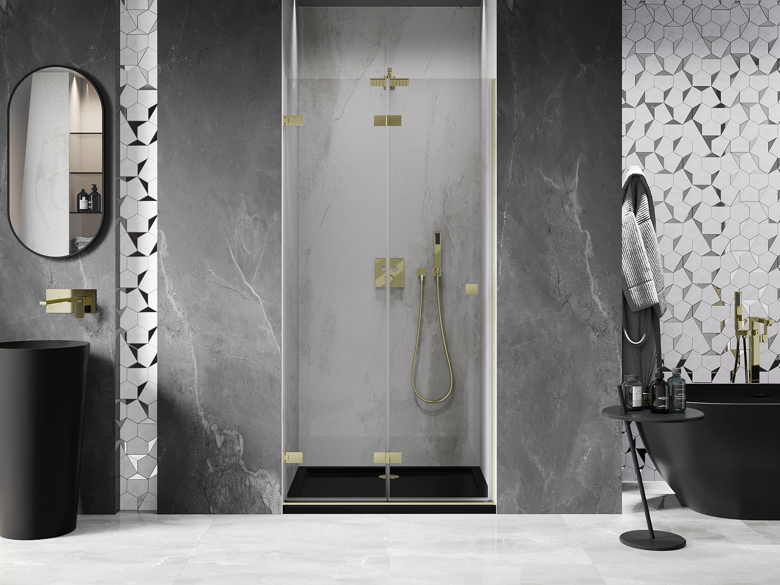Възможността за сгъване на вратите, както навън, така и навътре, позволява да се осигури повече пространство, когато душът не се използва. Това е идеалното решение за по-малки бани, максимално използвайки наличната площ.