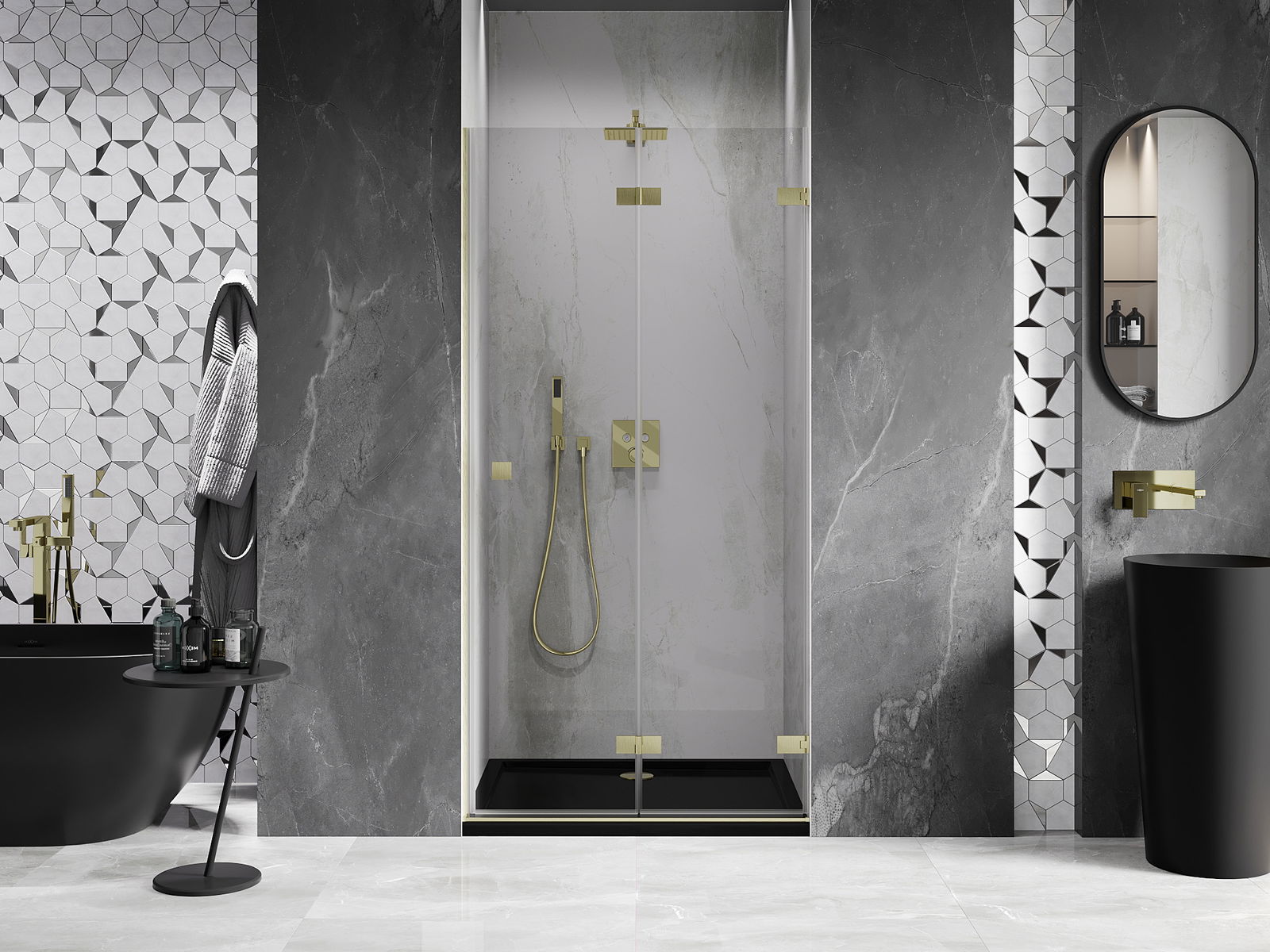 Mexen Lunar-F сгъваеми душ врати, десни, 80 см, прозрачни, златисти матирани - 836-080-000-55-00-P