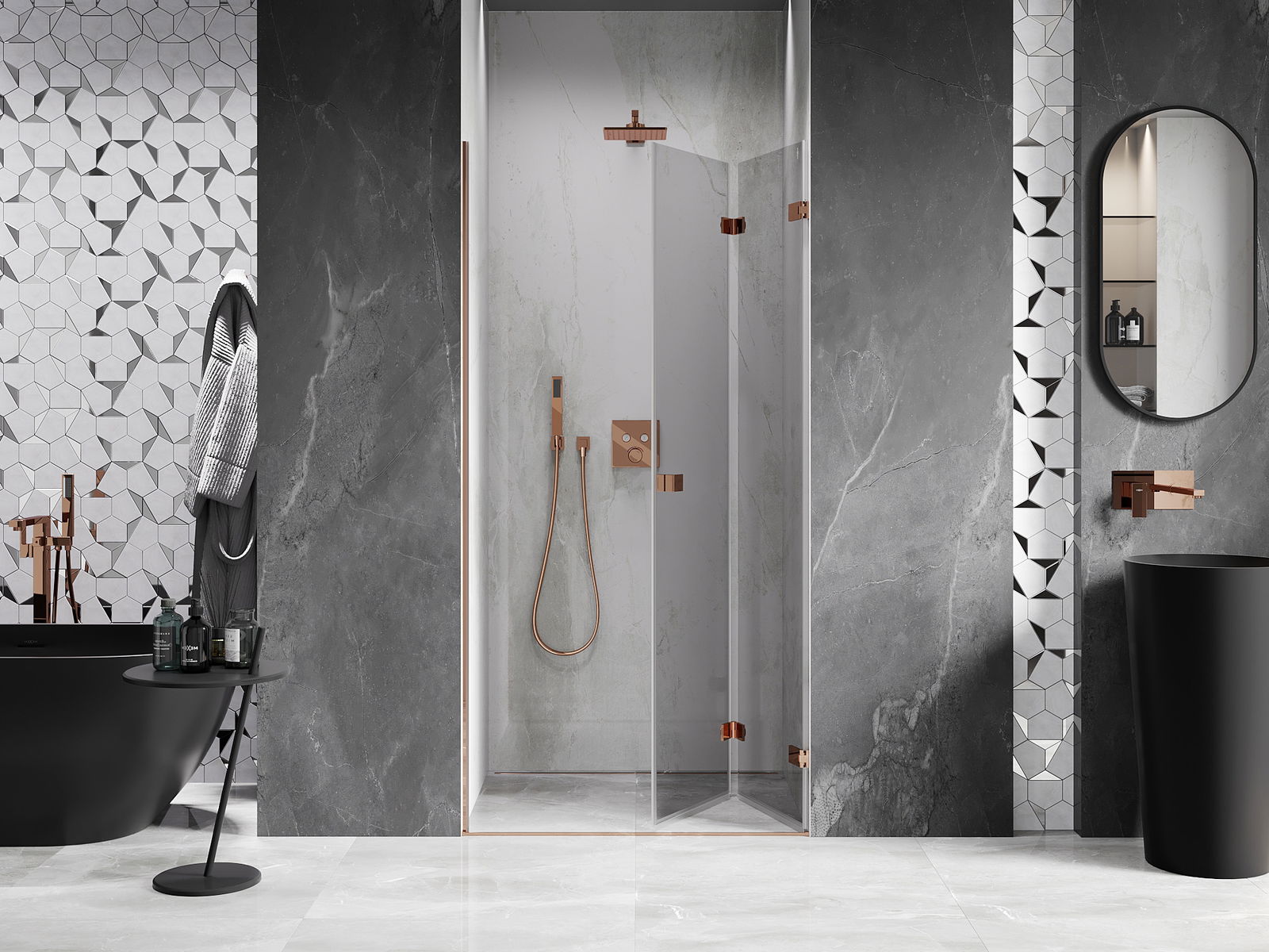 Mexen Lunar-F сгъваеми душ врати дясни 100 см, прозрачни, розово злато - 836-100-000-60-00-P