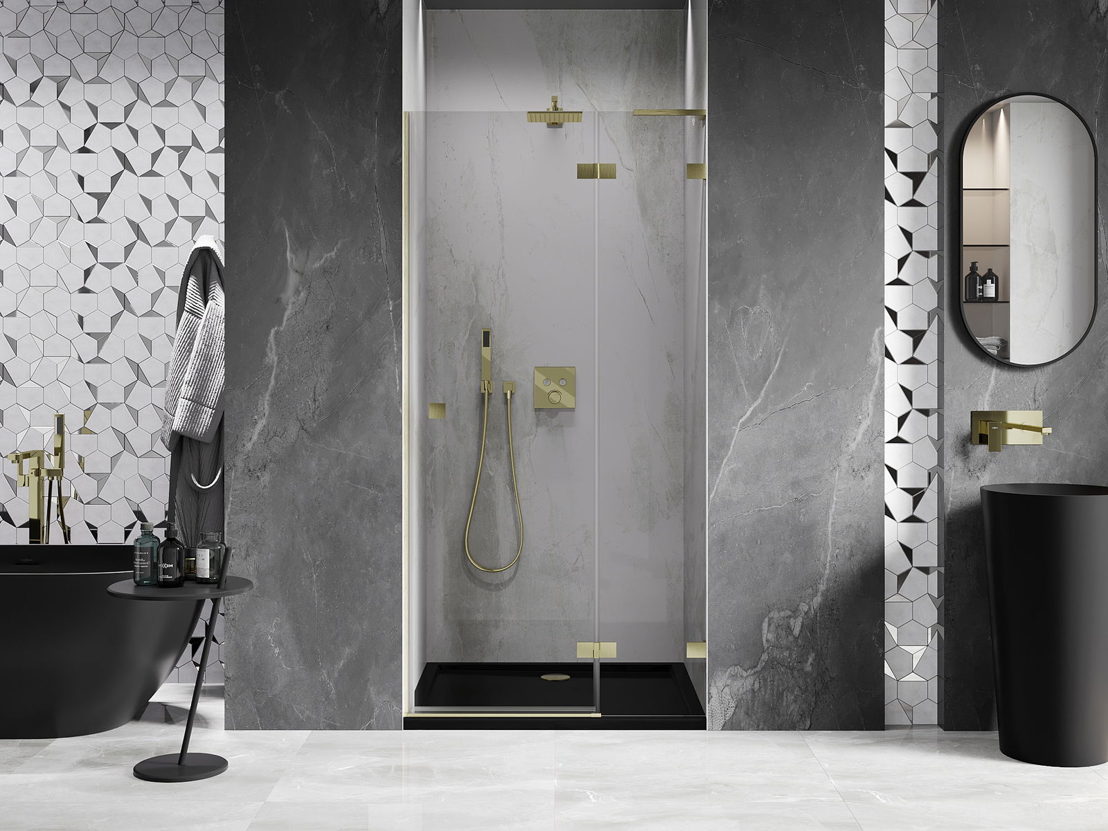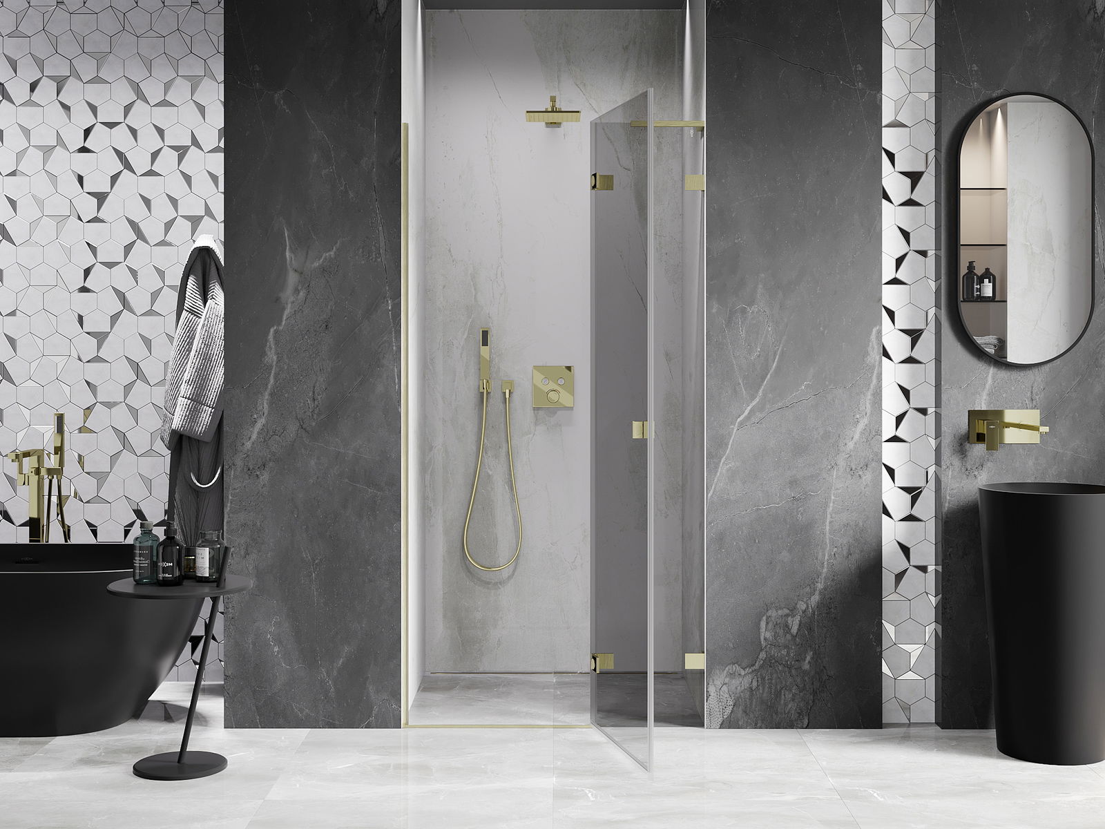 Mexen Lunar L, врати за душ кабина с отваряне надясно, 105 см, прозрачни, златисто четковани - 834L-105-000-55-00-P