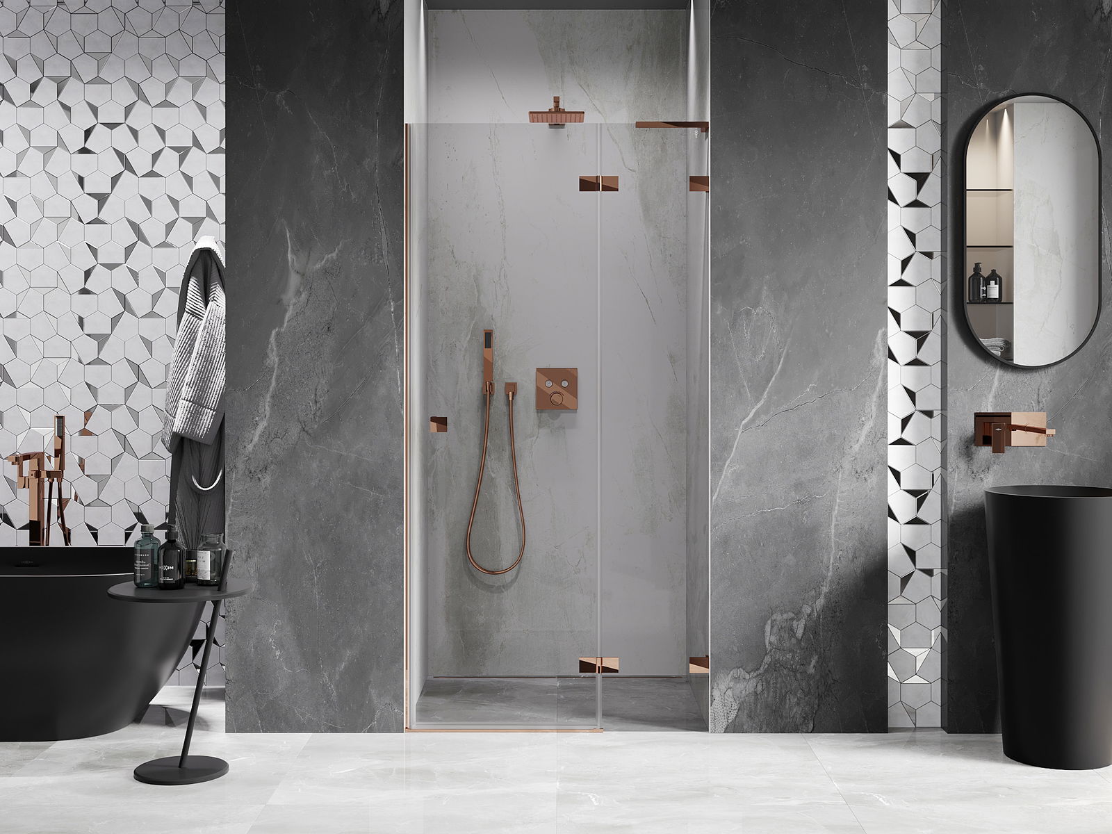 Mexen Lunar L врати за душ кабина, люлеещи се надясно 80 см, прозрачни, розово злато - 834L-080-000-60-00-P