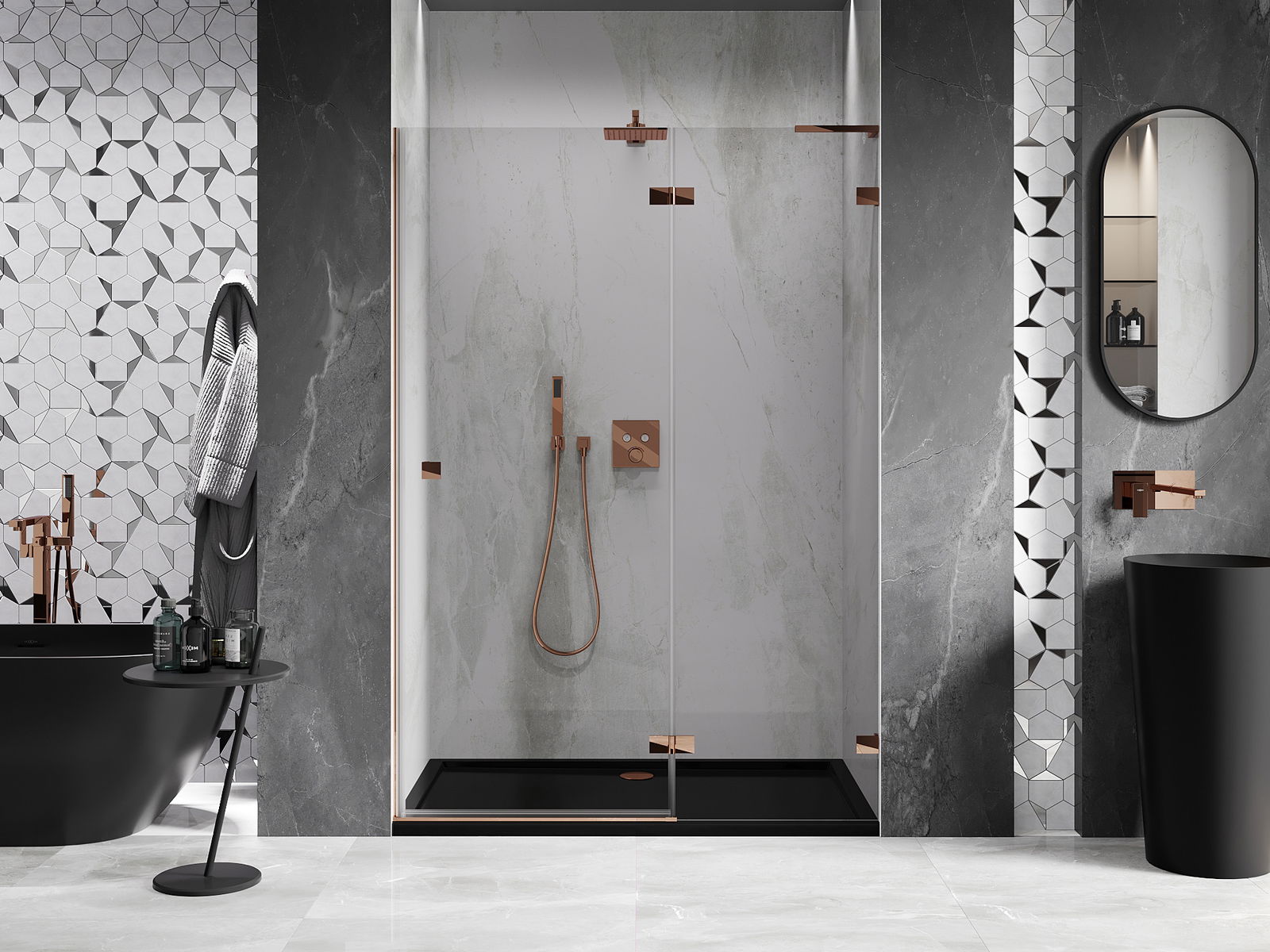 Mexen Lunar L душ врати панти десни 130 см, прозрачни, розово злато - 834L-130-000-60-00-P