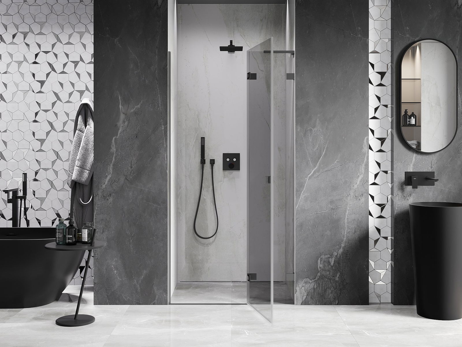 Mexen Lunar L врати за душ кабина, отваряеми на панти, десни 115 см, прозрачни, оръжеен метал - 834L-115-000-95-00-P
