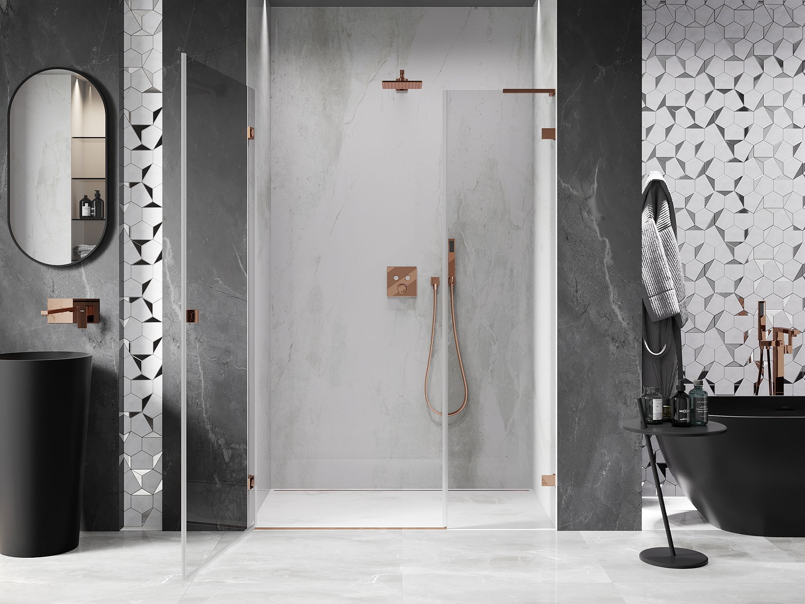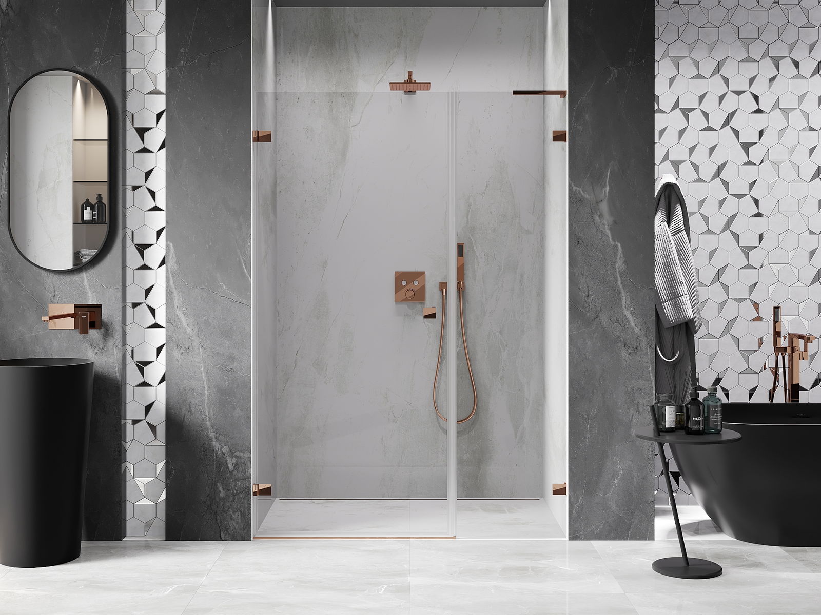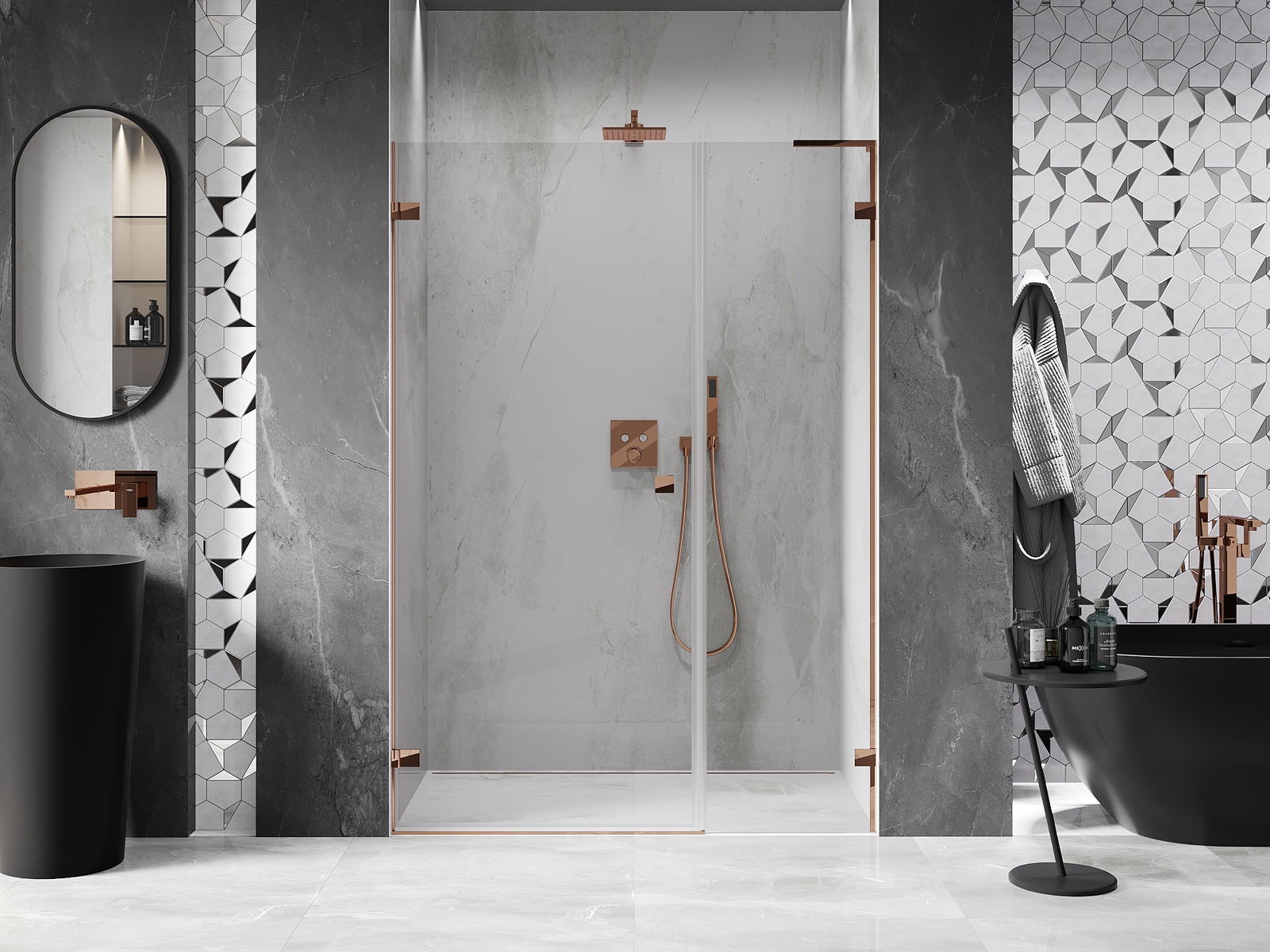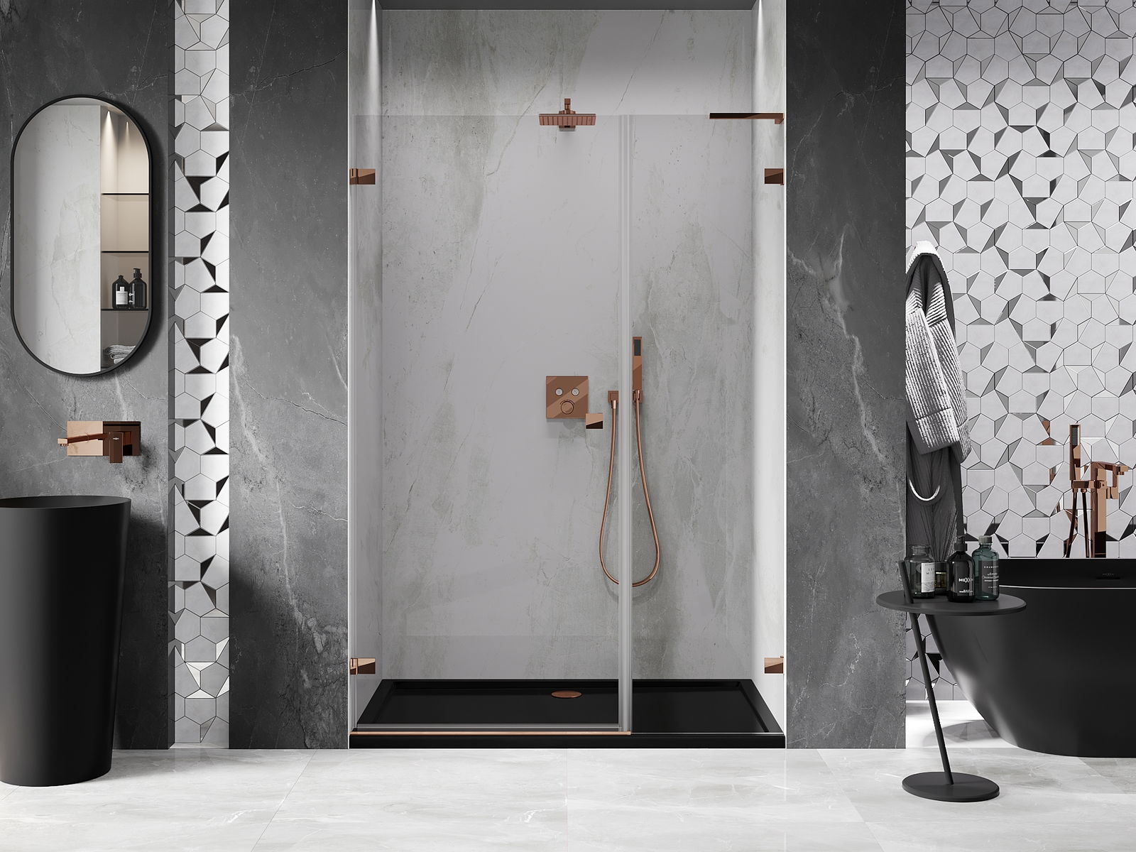 Mexen Lunar-B L ляви отварящи се врати за душ 130 см, прозрачни, розово злато - 832SL-130-050-60-00-L