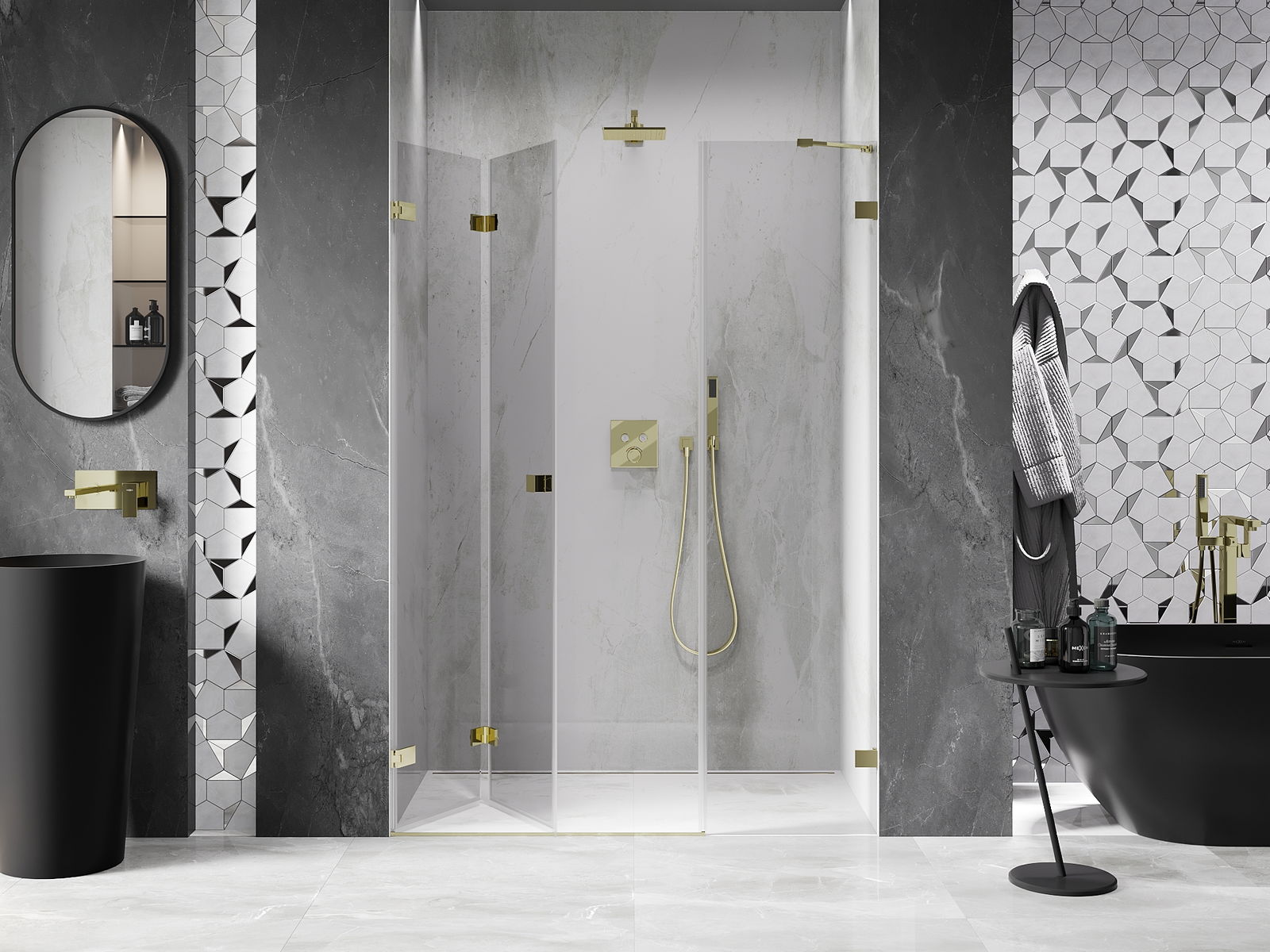 Mexen Lunar-F сгъваеми душ врати ляви 110 см, прозрачни, златни - 836S-110-050-50-00-L