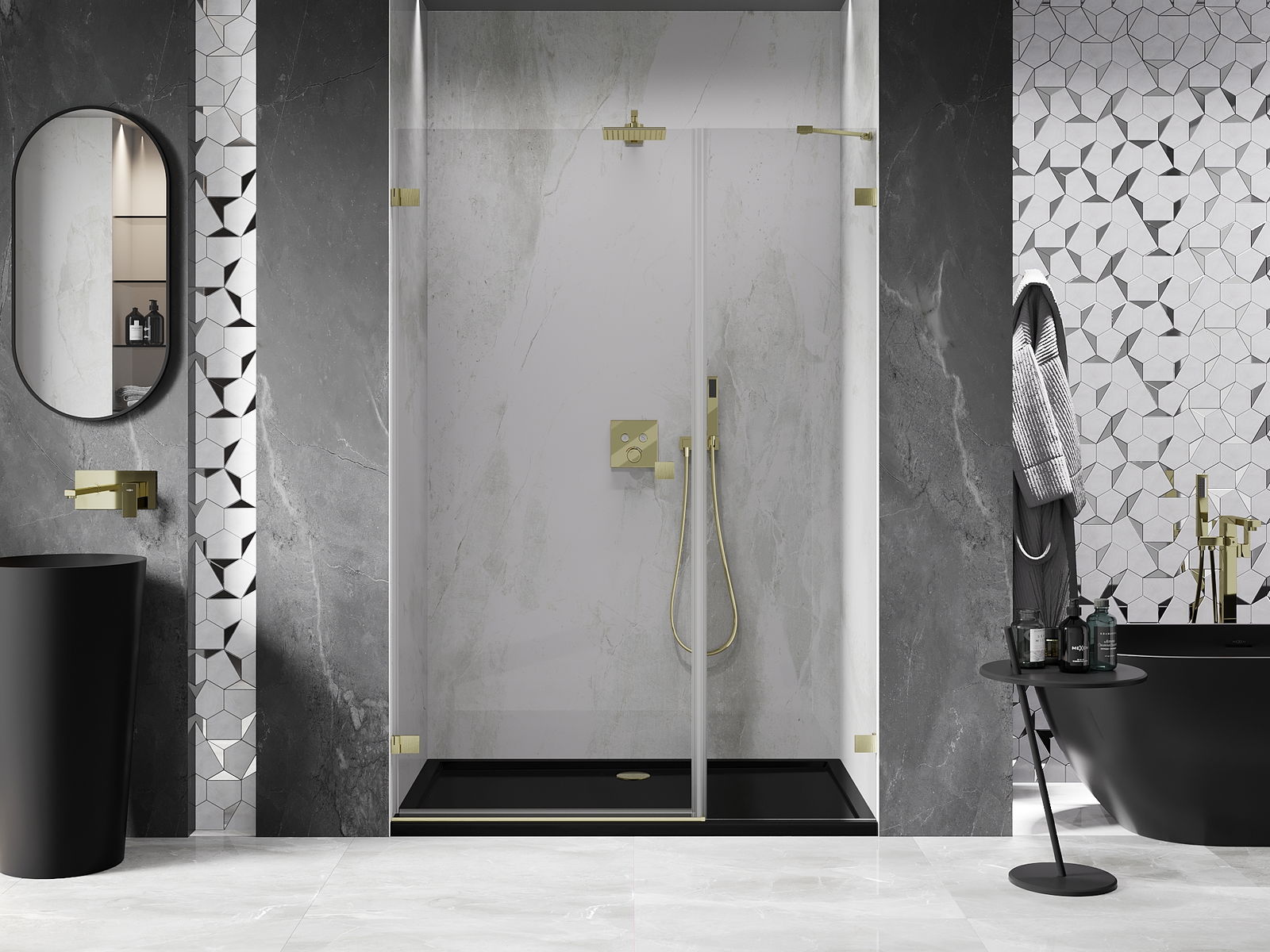 Скобите са изработени от много здрав месинг и създават изравнена повърхност на стъклото. Това е отличен избор, който съчетава елегантност, издръжливост и модерен дизайн. Благодарение на тези решения душът получава естетическа стойност и същевременно улеснява поддържането на чистота.