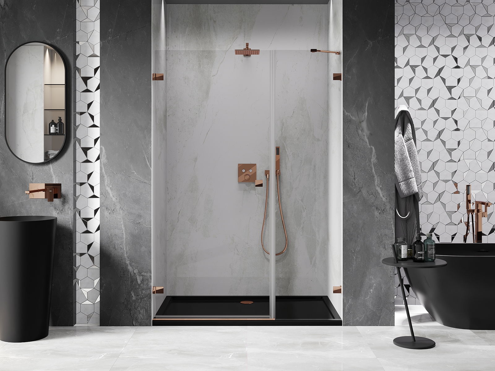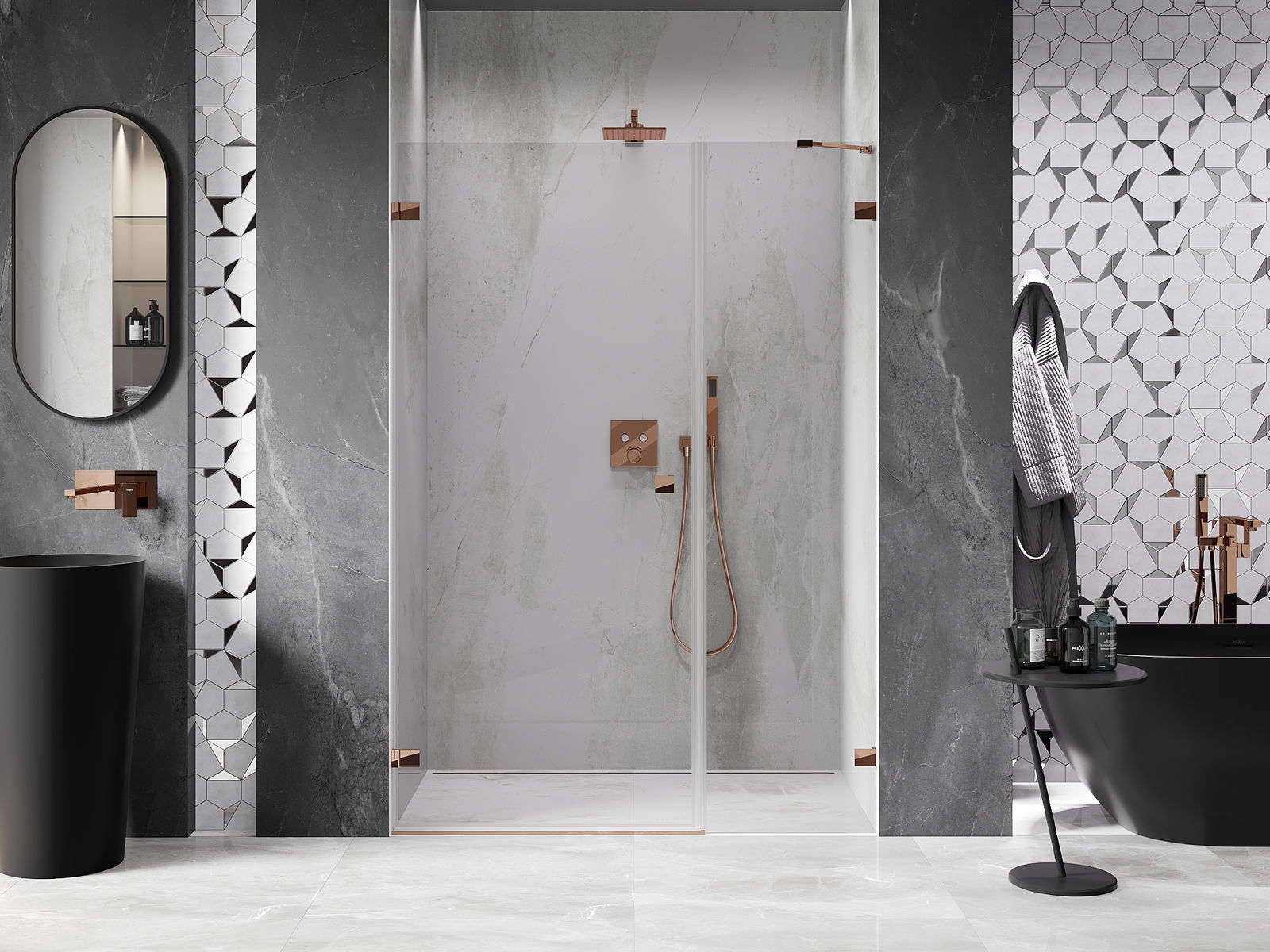 Mexen Lunar-B ляво отваряща се душ врата 130 см, прозрачна, розово злато - 832S-130-050-60-00-L